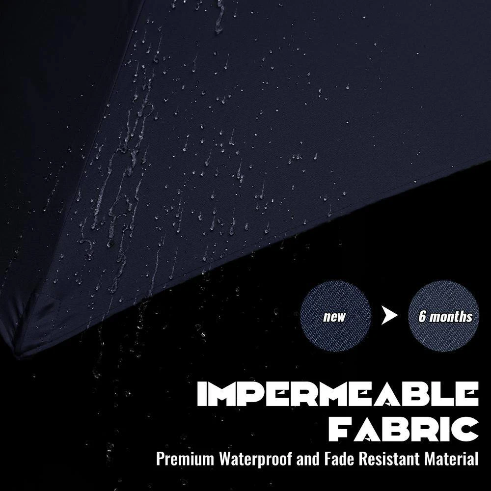 - Cantilever patio umbrella has 8 strong steel ribs, it is in sturdy and durable material forming a sturdy umbrella frame and the iron pole and steel ribs are powder coated in an antique bronze color for rust resistance