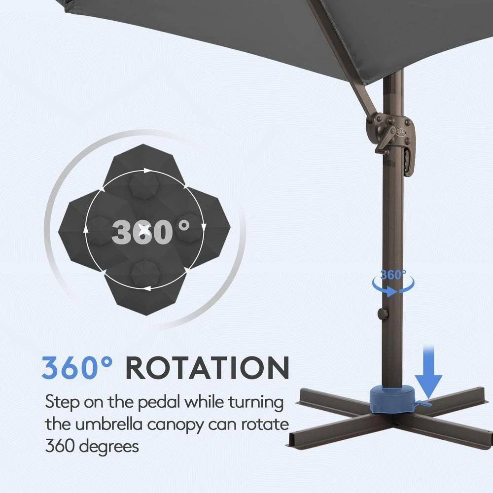 - Featuring a unique 360° rotation mechanism, you can effortlessly adjust the umbrella to cover any area without needing to move the base