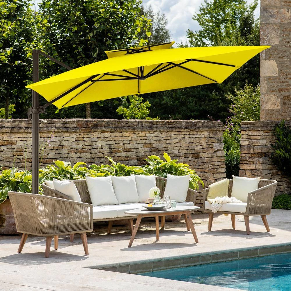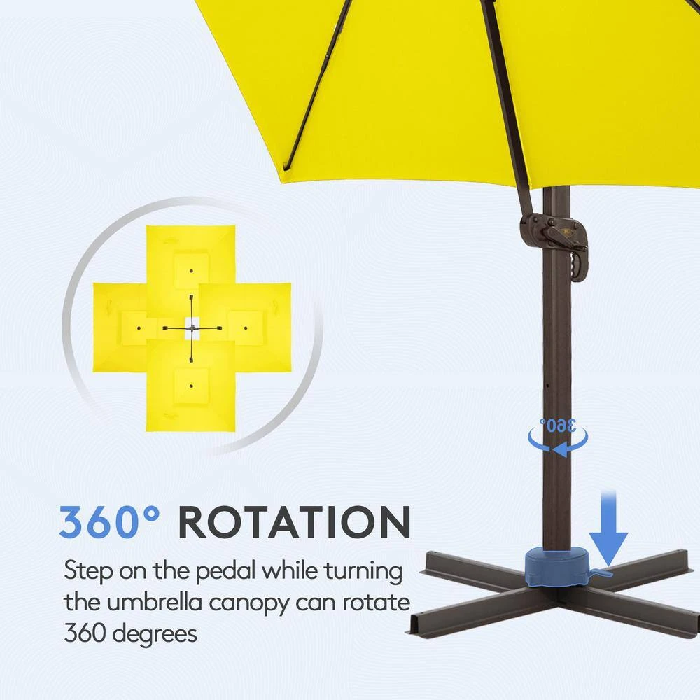 10 Ft. Square Cantilever Umbrella Patio Rotation Outdoor Umbrella With Cover In Yellow
