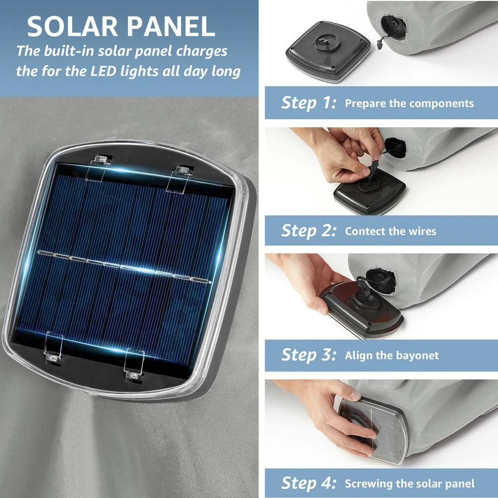 - Rechargeable solar powered – with 32 LED lights and a central hub light powered by solar rechargeable battery provide ambient mood lighting, it can last for 6-hours