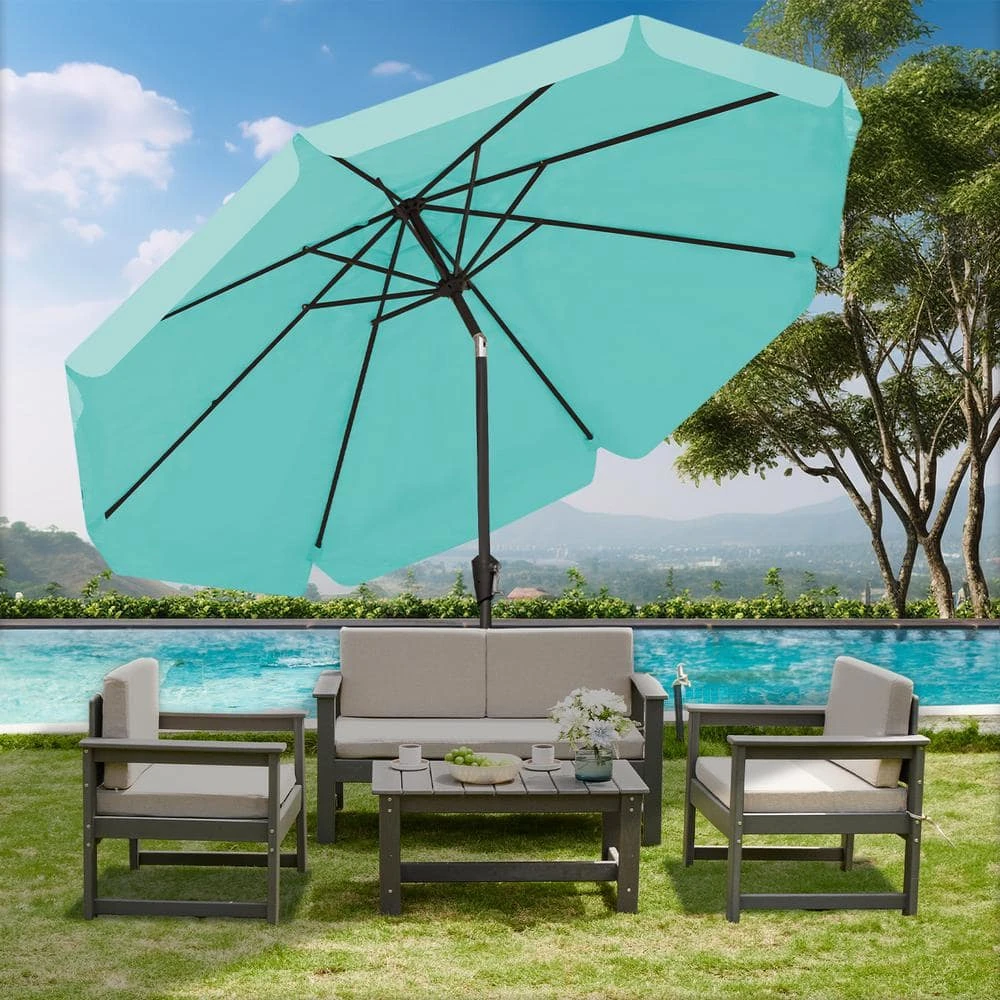 10 Ft. Steel Market Crank And Tilt Outdoor Patio Umbrella In Peacock Blue