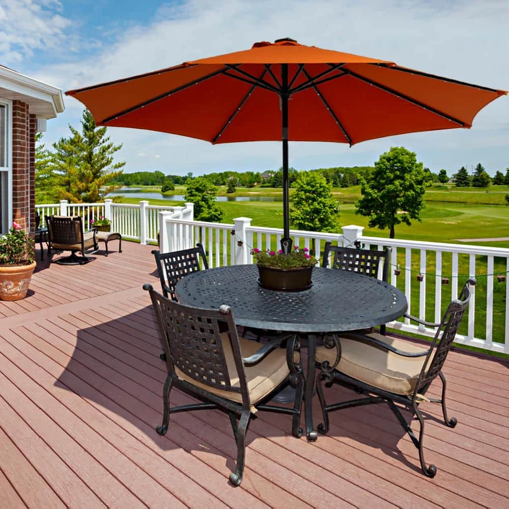 It’s ideal to spend time outdoors, but if you’re looking to minimize sun exposure to keep yourself from sunburn. This 10 feet diameter large patio umbrella, featuring heavy-duty fabric is specially designed to keep you cool and comfortable, apply to the yard, square and other places. This market umbrella is also designed with lights. 10 FT diameter shades your area with at least 6-8 chairs and table, Ideal for both residential and commercial locations.