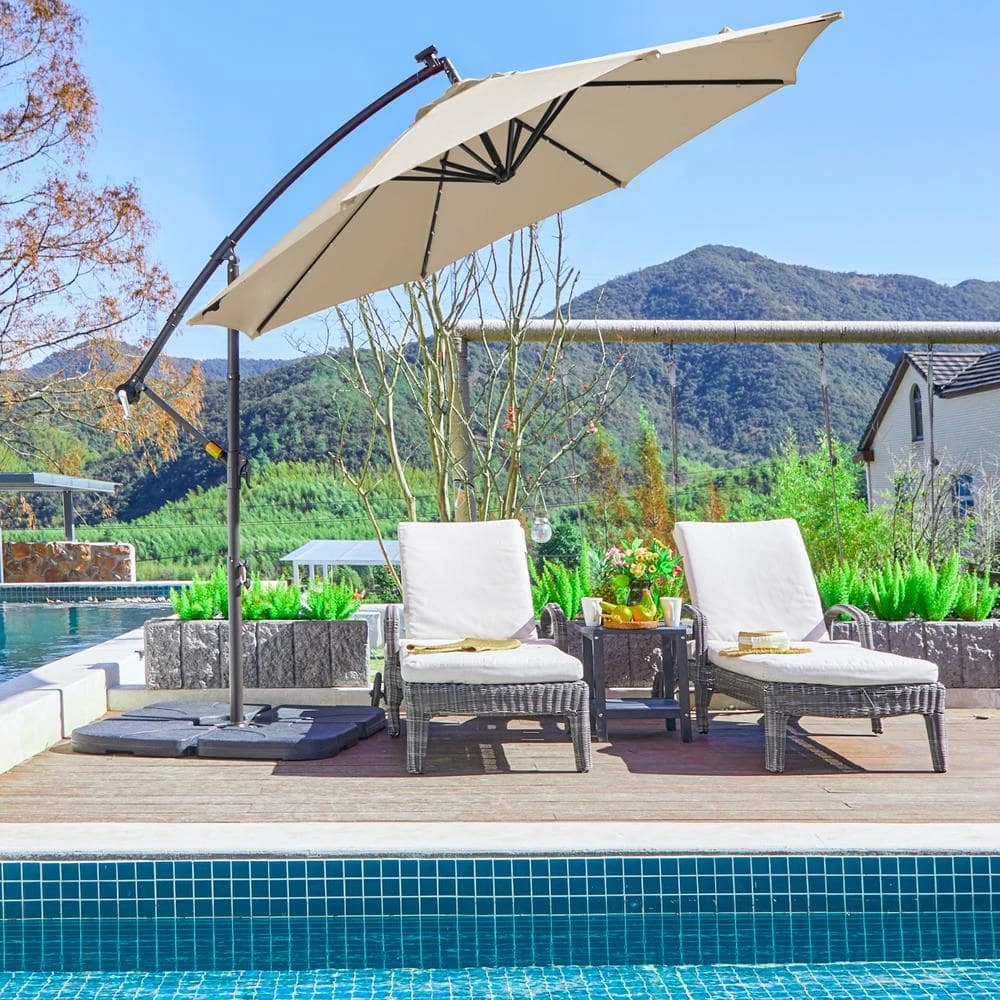 This is a product that has sun-proof function and sturdy construction with 32 solar LED lights. Even on the sunniest day, you can enjoy your outdoor living spaces and remain cooler by using this Patio Sun Shading Umbrella. It is probably the best way to stay outside without absorbing the harmful UV rays of the sun, which causes serious sunburns or even skin cancers. At the same time, it is a perfect choice when there is a time that rain spotting and you still want to enjoy the outdoor scenery and cool breeze. And when the sun falls, eco-friendly & energy-efficient solar-powered LED lights with Upgraded solar panel makes it romantic and warm to enjoy night scenery also besides sun shading needs during the day. (Sandbag included as a counterweight.).