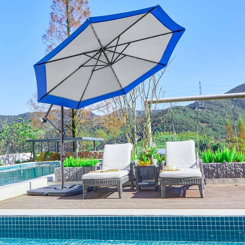 This is a product that has sun-proof function and sturdy construction with 32 solar LED lights. Even on the sunniest day, you can enjoy your outdoor living spaces and remain cooler by using this Patio Sun Shading Umbrella. It is probably the best way to stay outside without absorbing the harmful UV rays of the sun, which causes serious sunburns or even skin cancers. At the same time, it is a perfect choice when there is a time that rain spotting and you still want to enjoy the outdoor scenery and cool breeze. And when the sun falls, eco-friendly & energy-efficient solar-powered LED lights with Upgraded solar panel makes it romantic and warm to enjoy night scenery also besides sun shading needs during the day. (Sandbag included as a counterweight.).