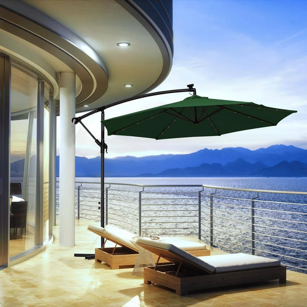 This is a product that has sun-proof function and sturdy construction with 32 solar LED lights. Even on the sunniest day, you can enjoy your outdoor living spaces and remain cooler by using this Patio Sun Shading Umbrella. It is probably the best way to stay outside without absorbing the harmful UV rays of the sun, which causes serious sunburns or even skin cancers. At the same time, it is a perfect choice when there is a time that rain spotting and you still want to enjoy the outdoor scenery and cool breeze. And when the sun falls, eco-friendly & energy-efficient solar-powered LED lights with Upgraded solar panel makes it romantic and warm to enjoy night scenery also besides sun shading needs during the day. (Sandbag included as a counterweight.).