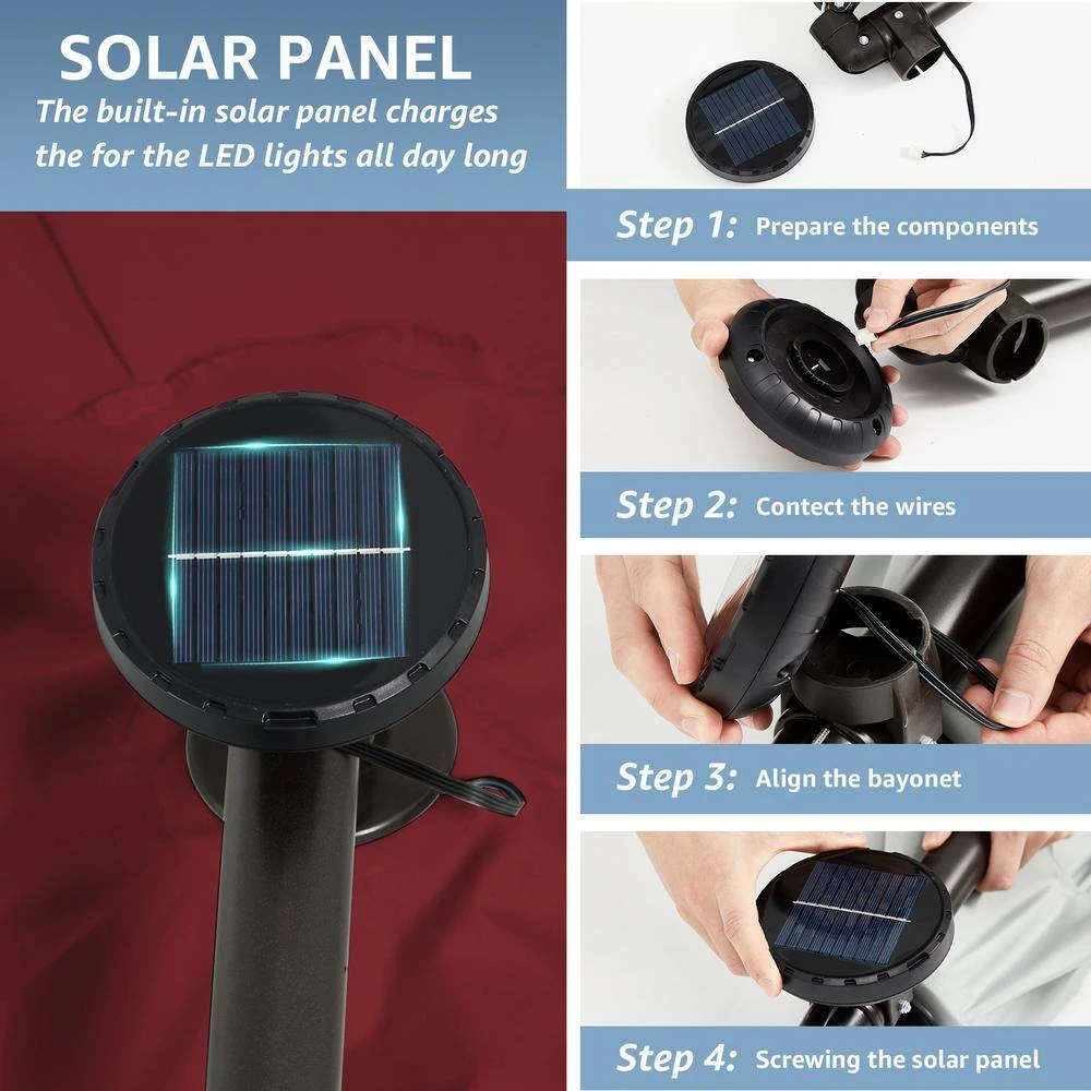 10 Ft. Steel Solar Lighted Cantilever Patio Umbrellas With Sandbag Weighted Base In Red