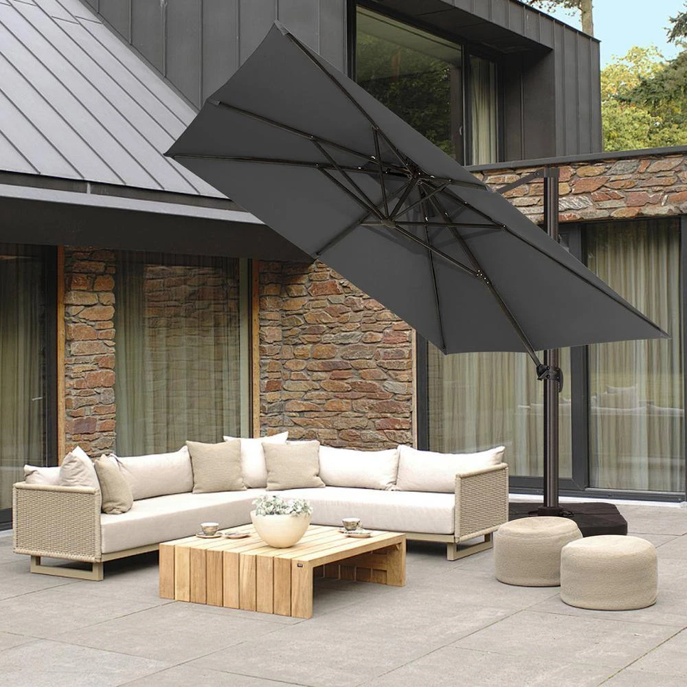 - Superior flexibility and 360° rotation: the advanced cantilever design includes an easy-to-use crank handle and tilt mechanism, allowing for effortless adjustment of the canopy angle, the umbrella also boasts a full 360° rotation, ensuring you can always find the perfect shade, no matter the sun’s position