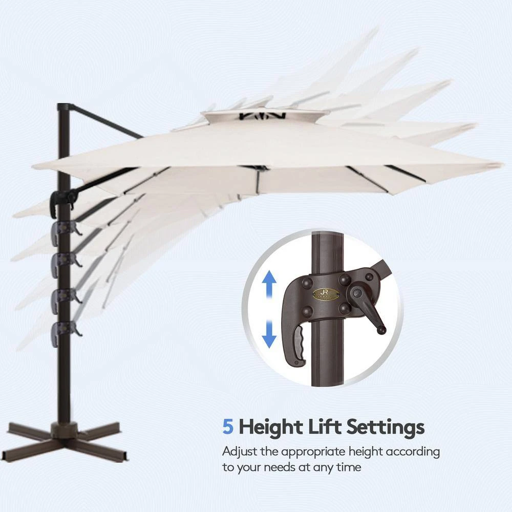 - Superior flexibility and 360° rotation: the advanced cantilever design includes an easy-to-use crank handle and tilt mechanism, allowing for effortless adjustment of the canopy angle, the umbrella also boasts a full 360° rotation, ensuring you can always find the perfect shade, no matter the sun’s position