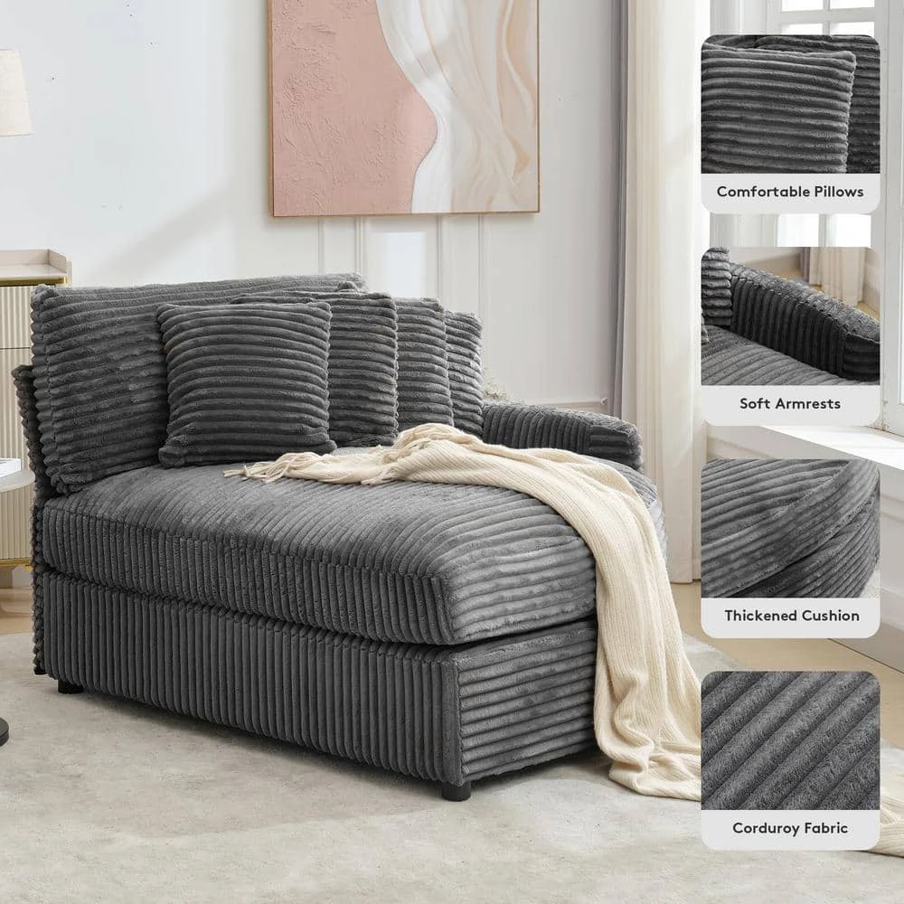 100.78 In. Dark Grey Corduroy Detachable Sofa With Eight Pillows