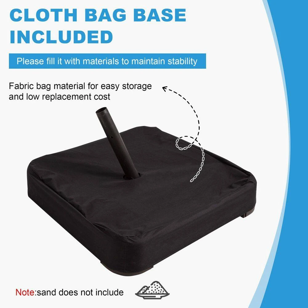 - Sandbag base included the patio umbrella comes with a sandbag (without sand), for stability and safe use, the sandbag must be filled with sand or stones, a thin metal reinforced safety bar with leveling device is hidden under the base to make the umbrella more stable in the setup, you also can purchase a wheel base to match it for easily move