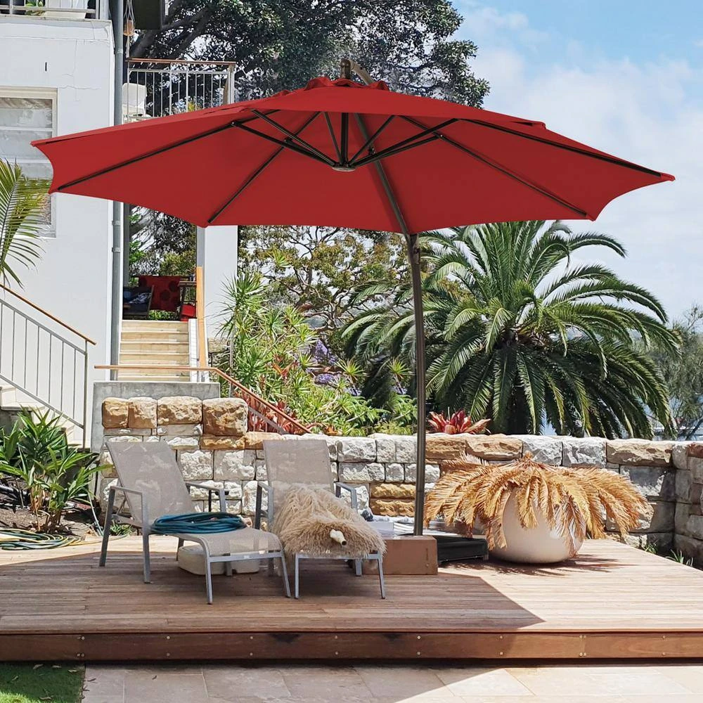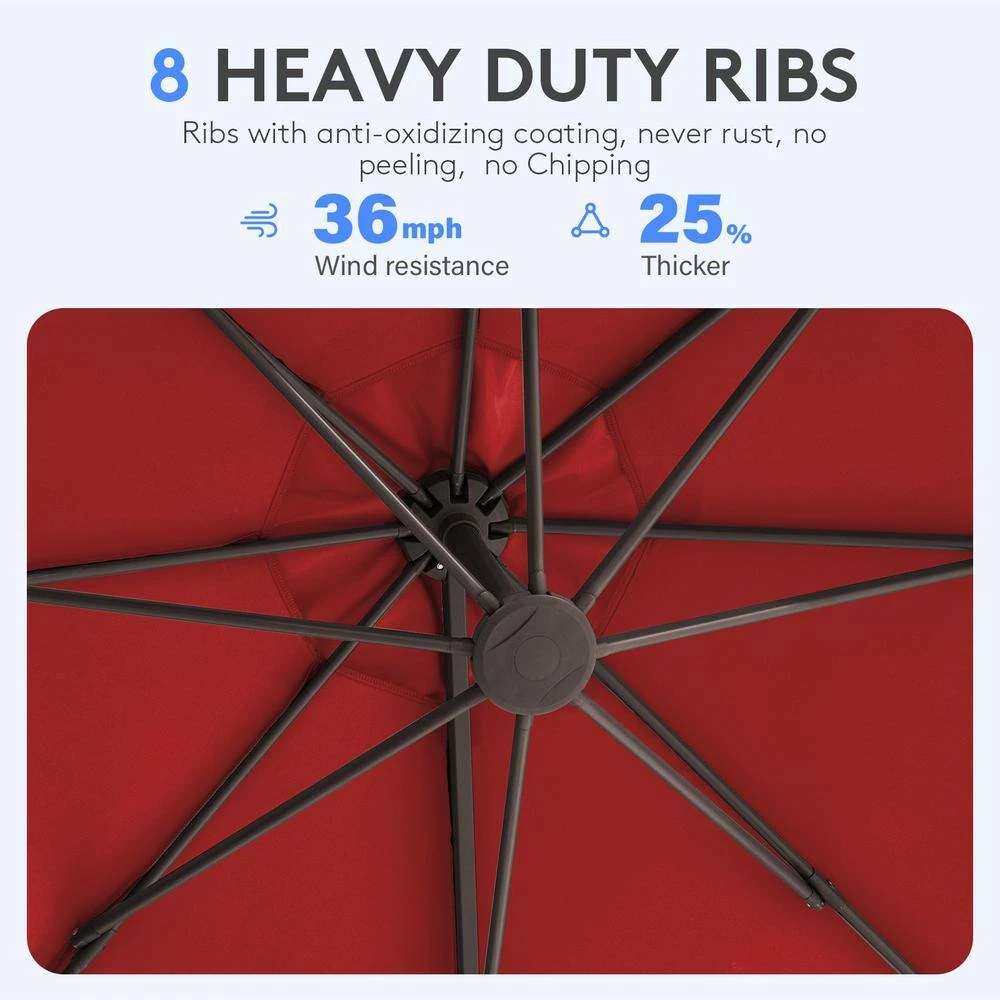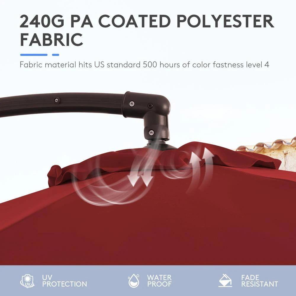 - Durable material- our offset hanging umbrella is made of 240 gsm polyester fiber that is insulated, UV radiation resistant and water resistant, to extend the life of your new patio umbrella, we recommend that you cover and store your sunshade at night or in extreme weather conditions