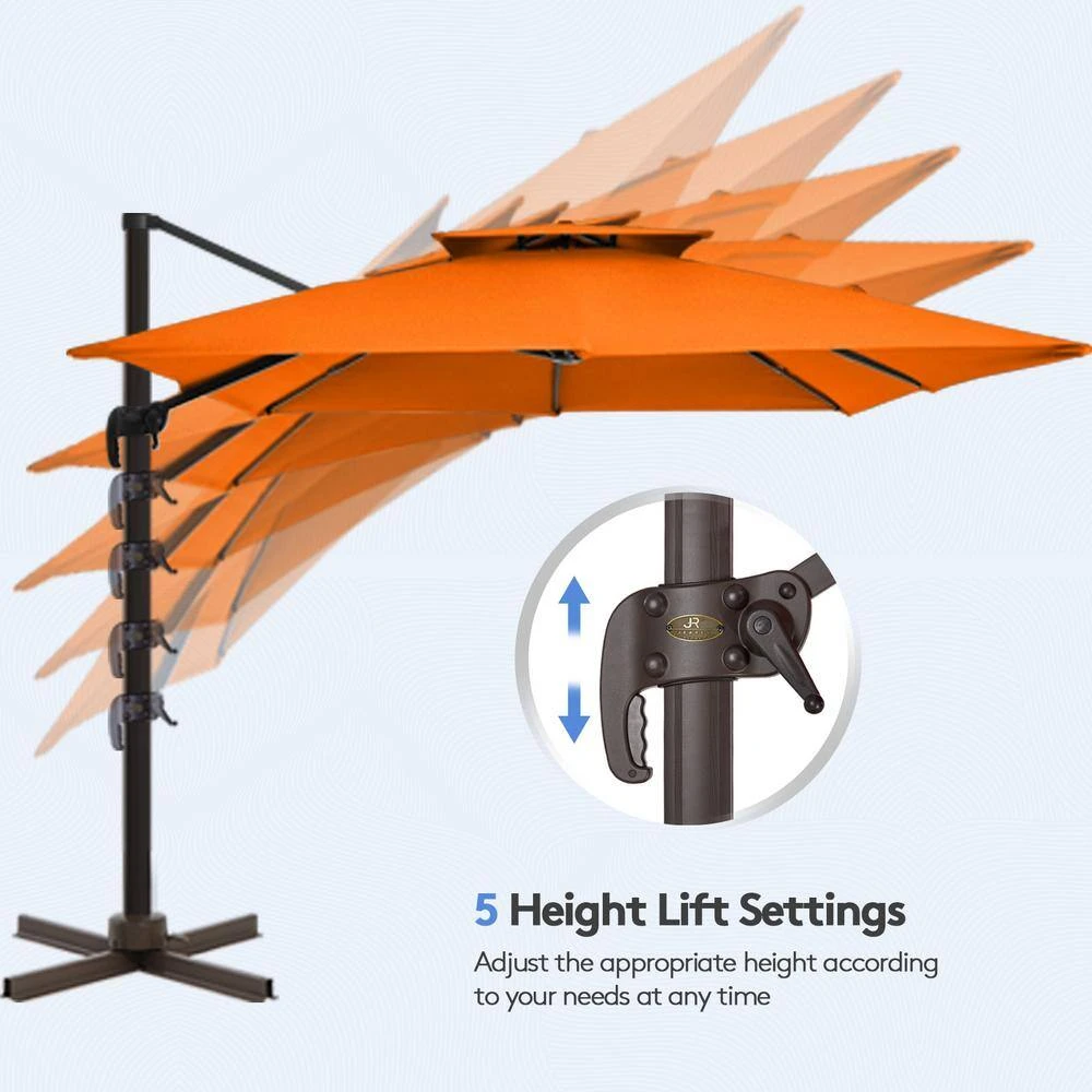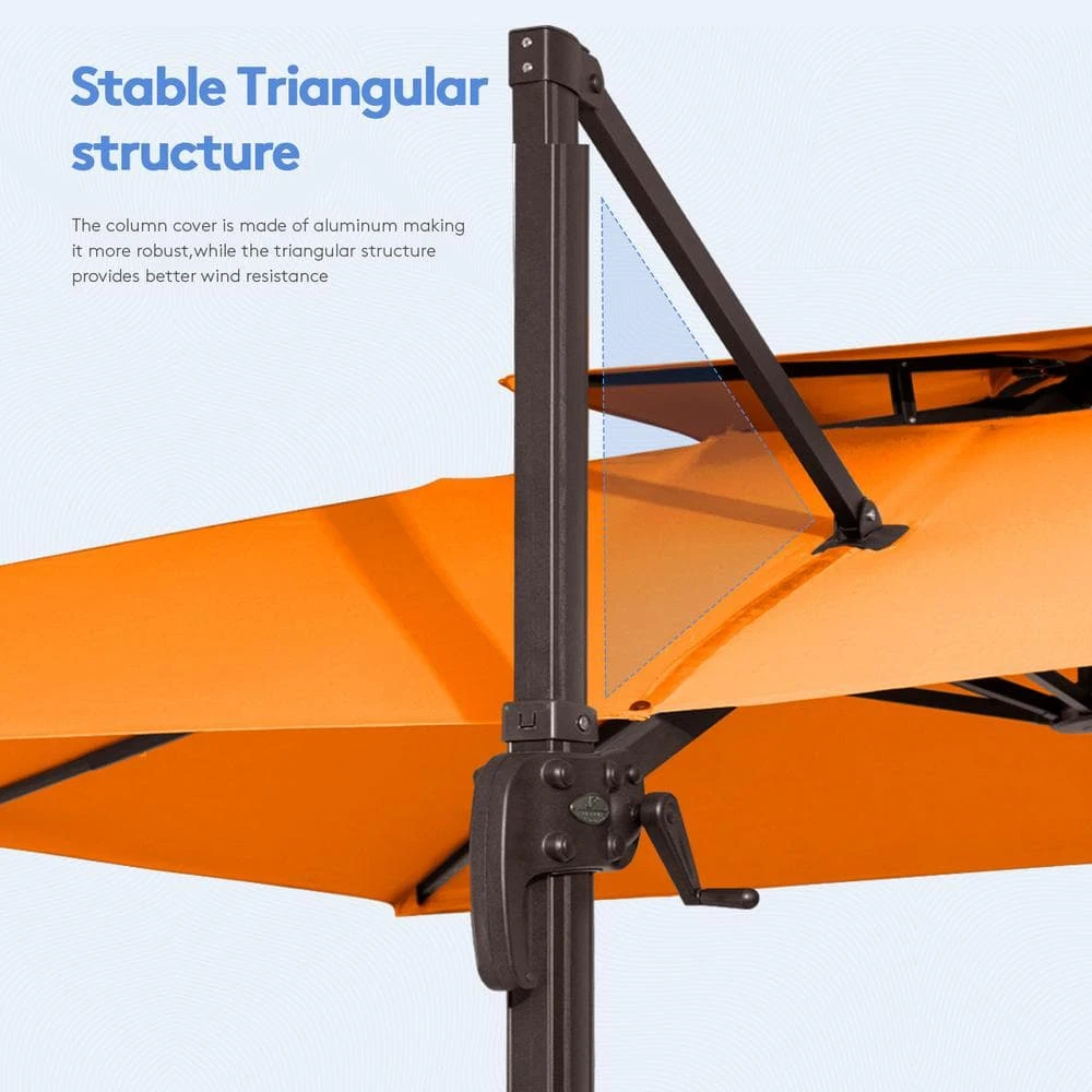 11 Ft. Square Cantilever Umbrella Patio Rotation Outdoor Umbrella With Cover In Orange