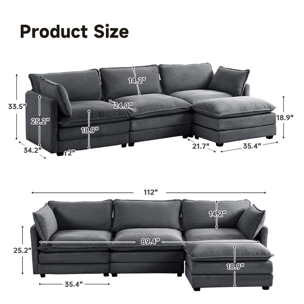 - 🛋️ Spacious Seating: Accommodate family and friends with ease on this generously sized sectional that comfortably seats four.