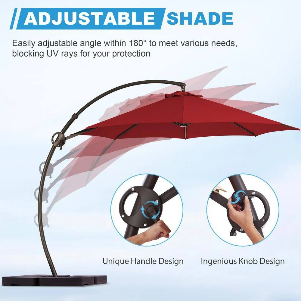 - Durable material- our offset hanging umbrella is made of 240 gsm polyester fiber that is insulated, UV radiation resistant and water resistant, to extend the life of your new patio umbrella, we recommend that you cover and store your sunshade at night or in extreme weather conditions