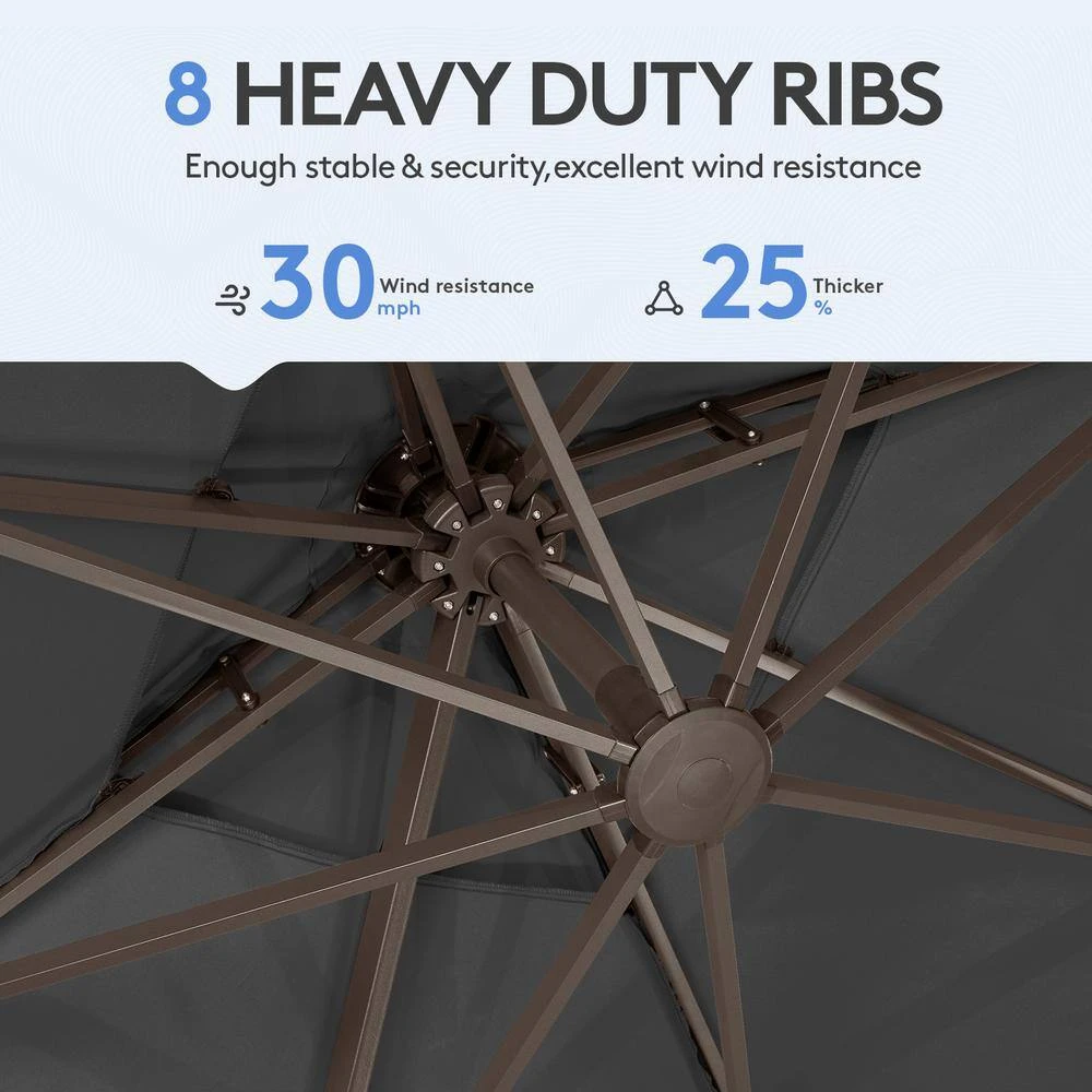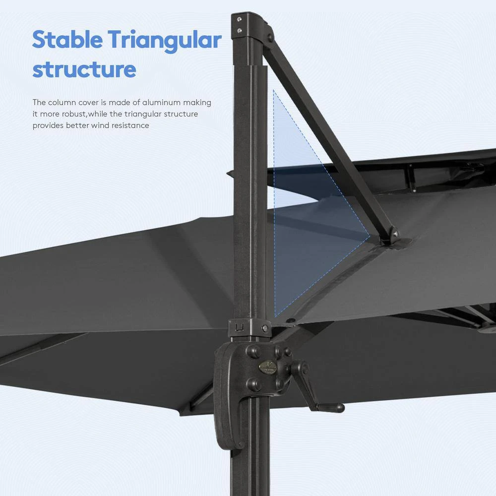 12 Ft. X 12 Ft. Square Outdoor Cantilever Umbrella Patio 2-Tier Top Rotation Umbrella With Cover In Gray