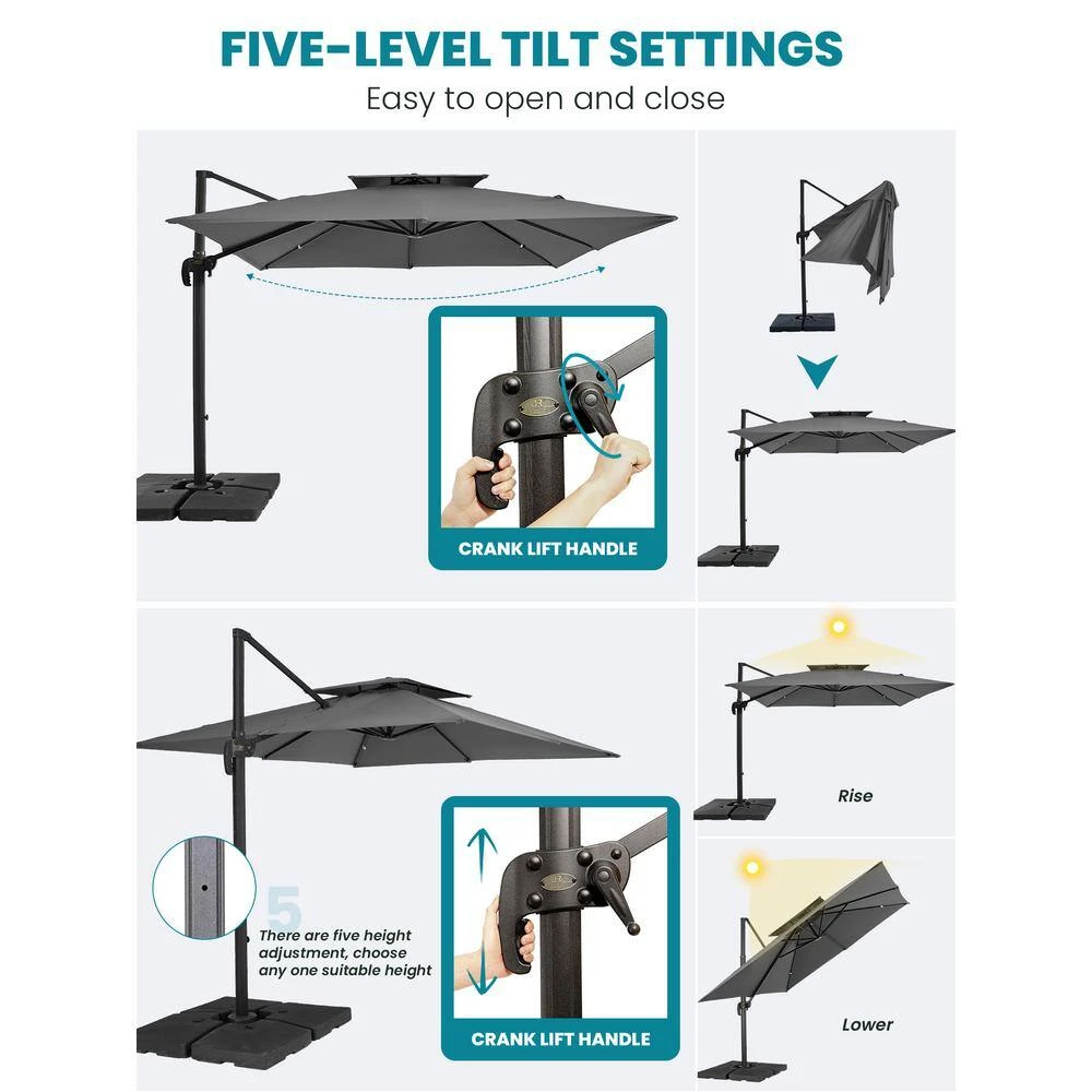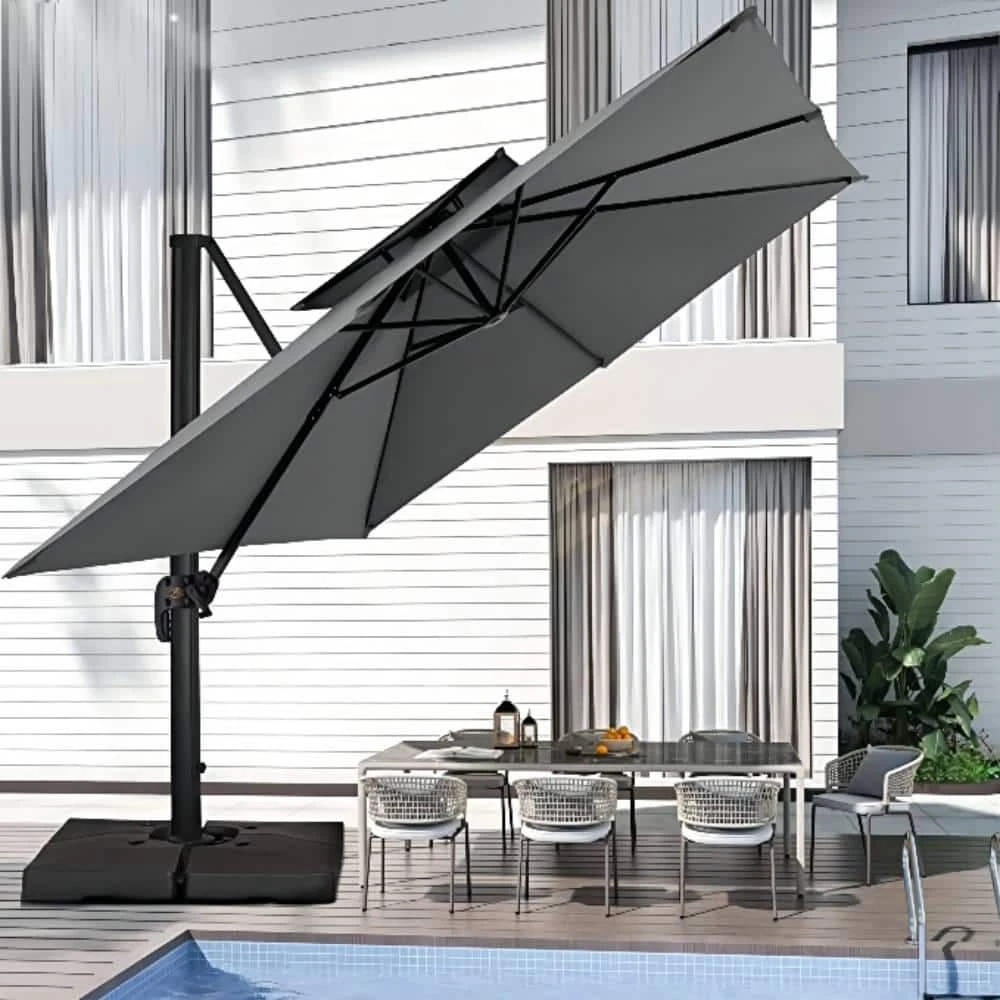 12 Ft. X 12 Ft. Square Two-Tier Top Rotation Outdoor Cantilever Patio Umbrella With Cover In Gray