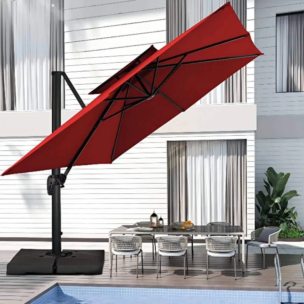 - UMBRELLA COVER INCLUDED – In order to extend service life of your new 2 tier patio umbrella, we customized the patio parasol cover for each outdoor umbrella, we recommend you to cover and store the umbrella at night or during extreme weather conditions