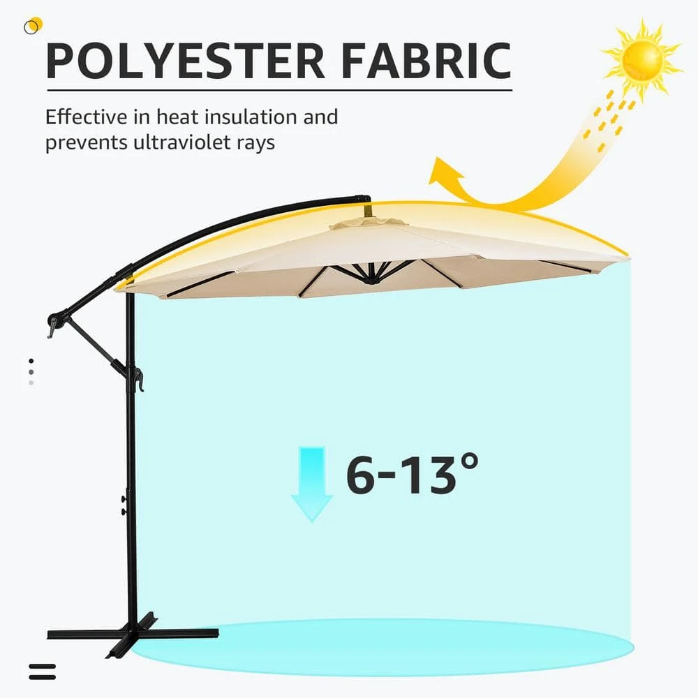 Enhance your outdoor experience with the 120 in. cantilever umbrella. Designed for both style and functionality, this umbrella provides ample shade while enhancing the aesthetic of your patio, garden, or poolside area. The smooth crank lift mechanism ensures effortless opening and closing, while the 120-inch (10-foot) canopy provides comprehensive shade for larger outdoor spaces. Enjoy comfort and style while protecting yourself and your guests from the sun with this exceptional cantilever umbrella. Available in 15 vibrant colors, this umbrella allows you to personalize your outdoor decor.