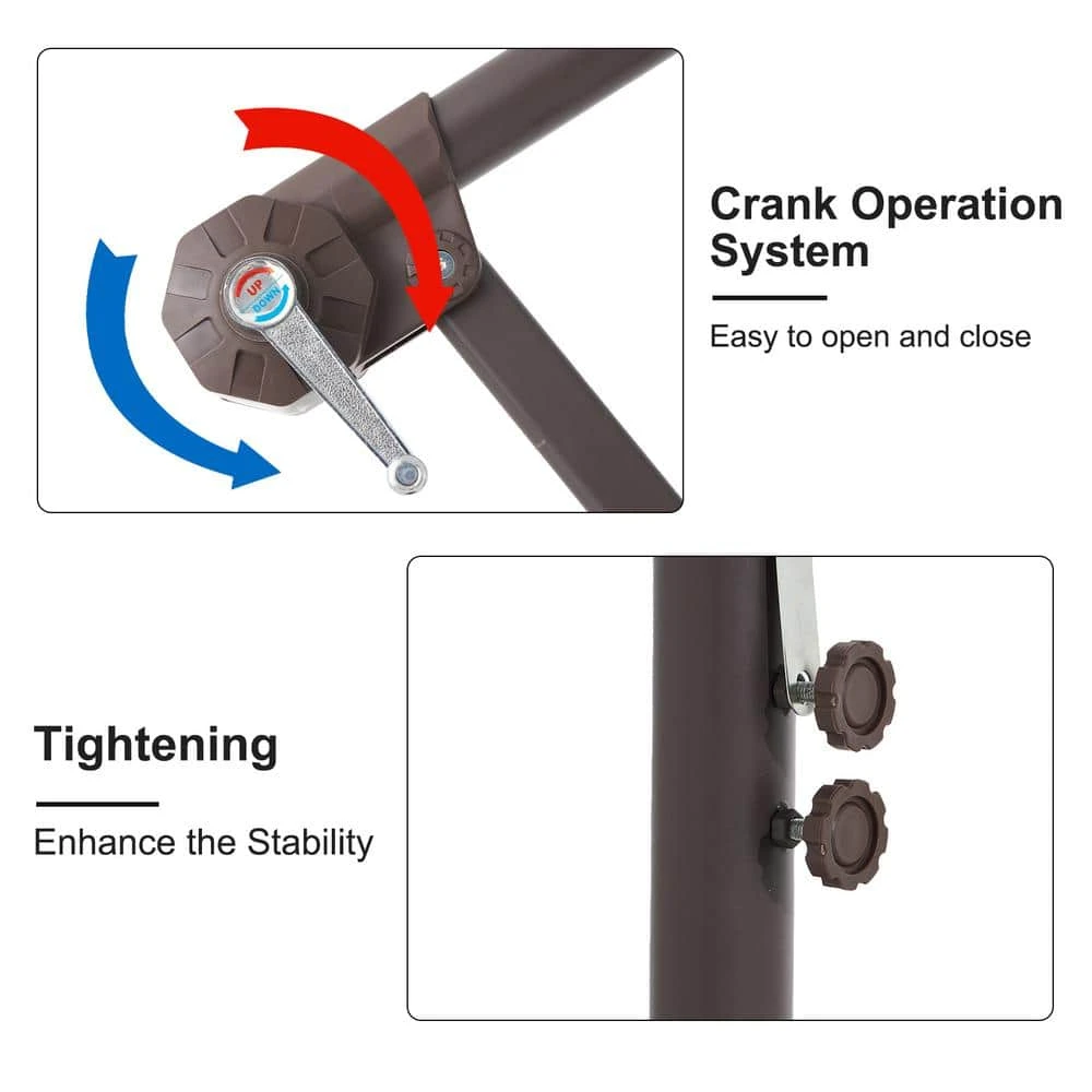 - Easy to control: the crank lift mechanism makes it easy to open and close the umbrella in seconds, free adjustments for the perfect angles to meet your need as the Sun runs