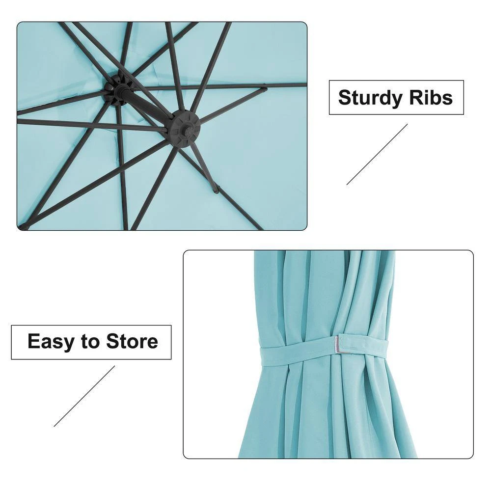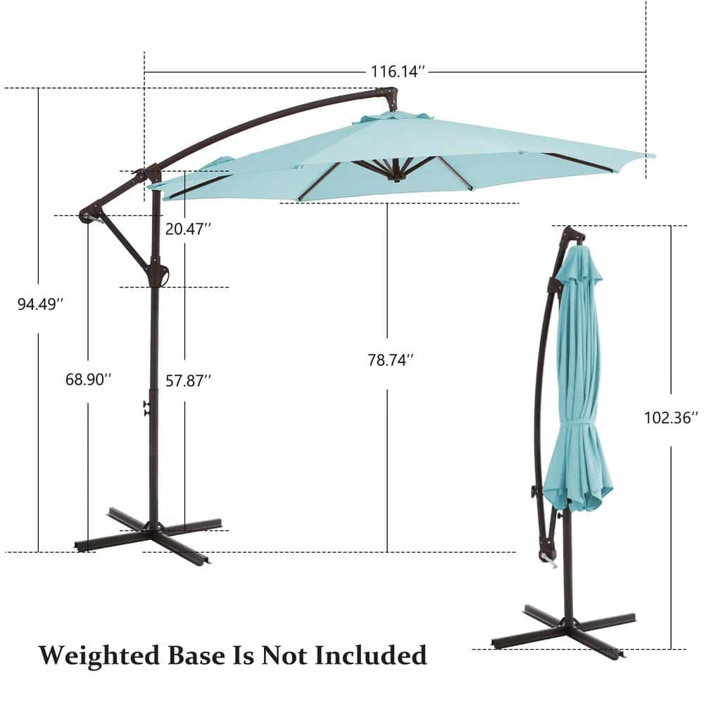 Enhance your outdoor experience with the 120 in. cantilever umbrella. Designed for both style and functionality, this umbrella provides ample shade while enhancing the aesthetic of your patio, garden, or poolside area. The smooth crank lift mechanism ensures effortless opening and closing, while the 120-inch (10-foot) canopy provides comprehensive shade for larger outdoor spaces. Enjoy comfort and style while protecting yourself and your guests from the sun with this exceptional cantilever umbrella. Available in 15 vibrant colors, this umbrella allows you to personalize your outdoor decor.