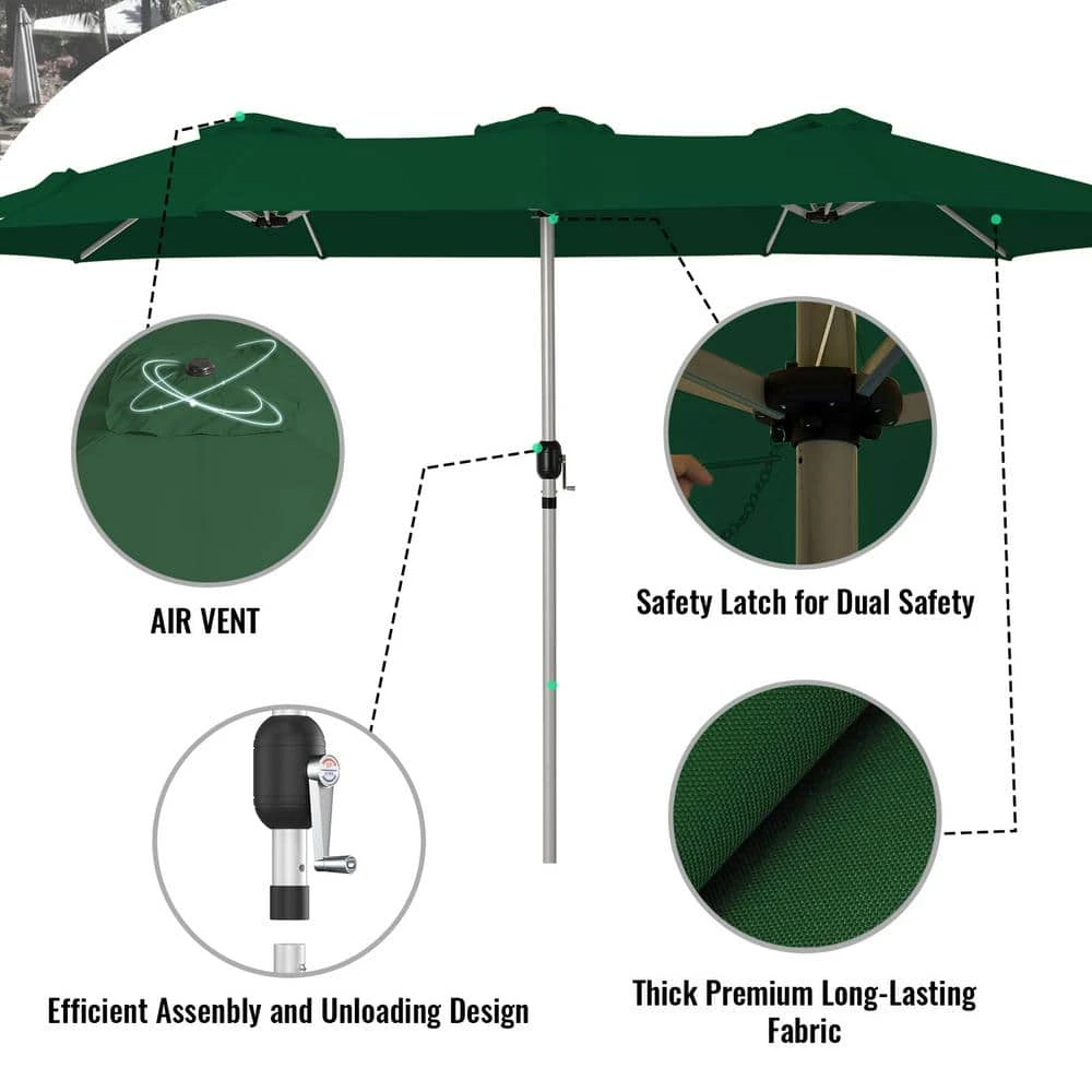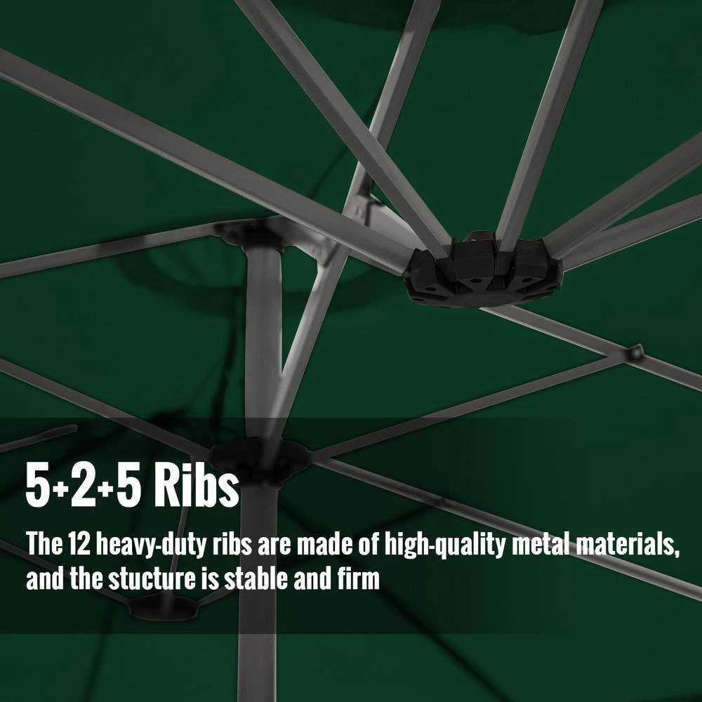 181 in. x 102 in. Dodecagon Double-sided outdoor market patio umbrella can provide greater shadows and enjoy more coolness and comfort. The fabric can block harmful ultra-violet rays and reduce the heat of the sun, thereby protecting your skin. With this umbrella, you can spend a pleasant time with your family and friends in the courtyard, beach, or swimming pool.