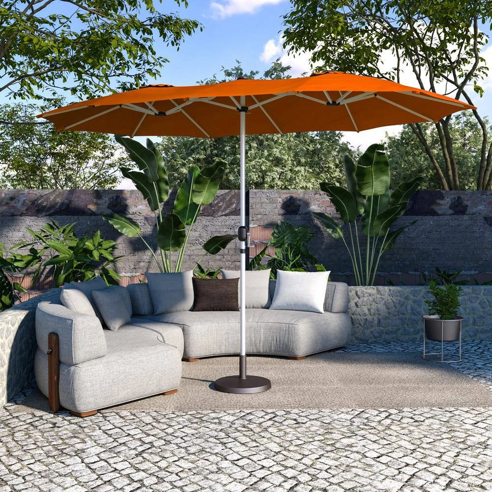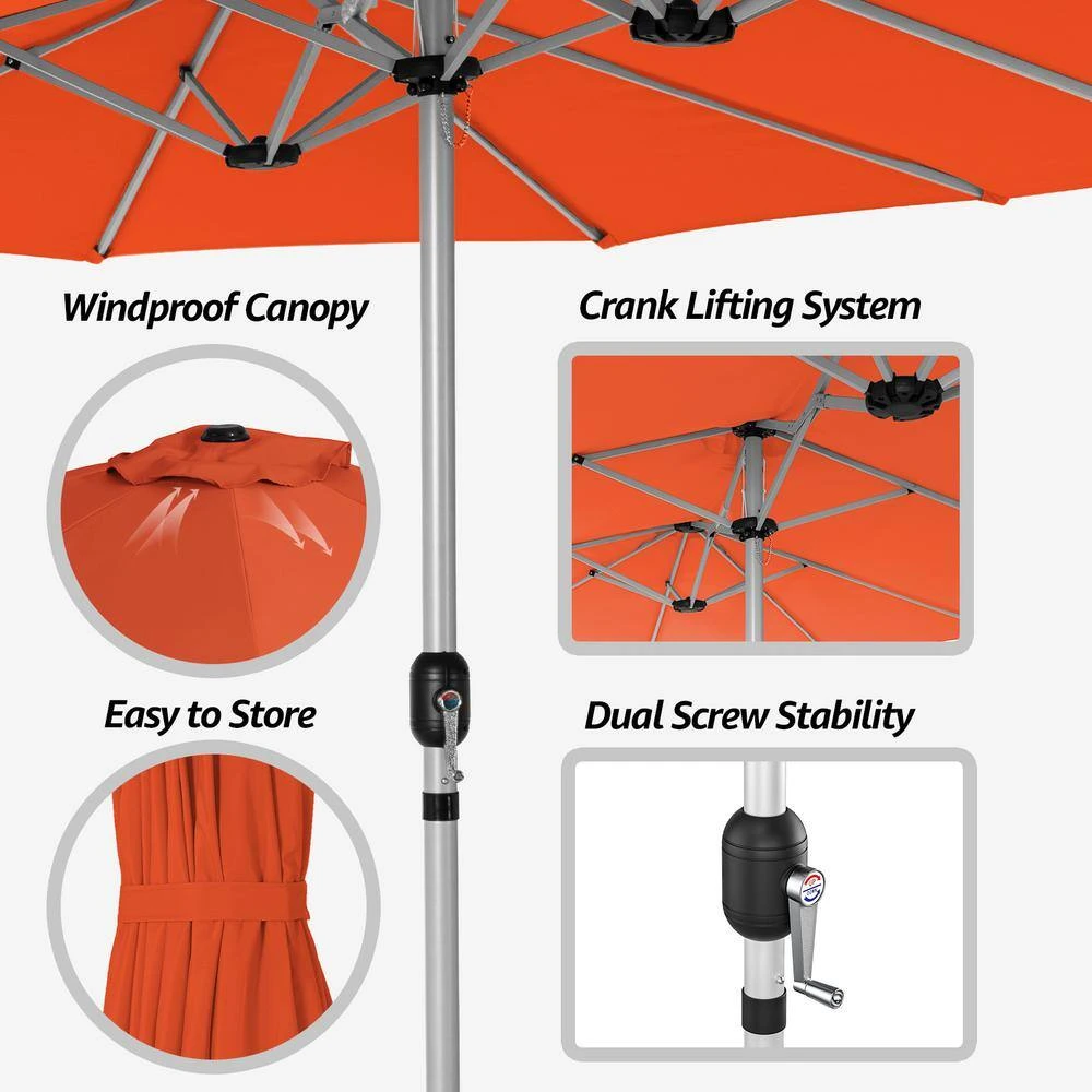 181 in. x 102 in. Dodecagon Double-sided outdoor market patio umbrella can provide greater shadows and enjoy more coolness and comfort. The fabric can block harmful ultra-violet rays and reduce the heat of the sun, thereby protecting your skin. With this umbrella, you can spend a pleasant time with your family and friends in the courtyard, beach, or swimming pool.