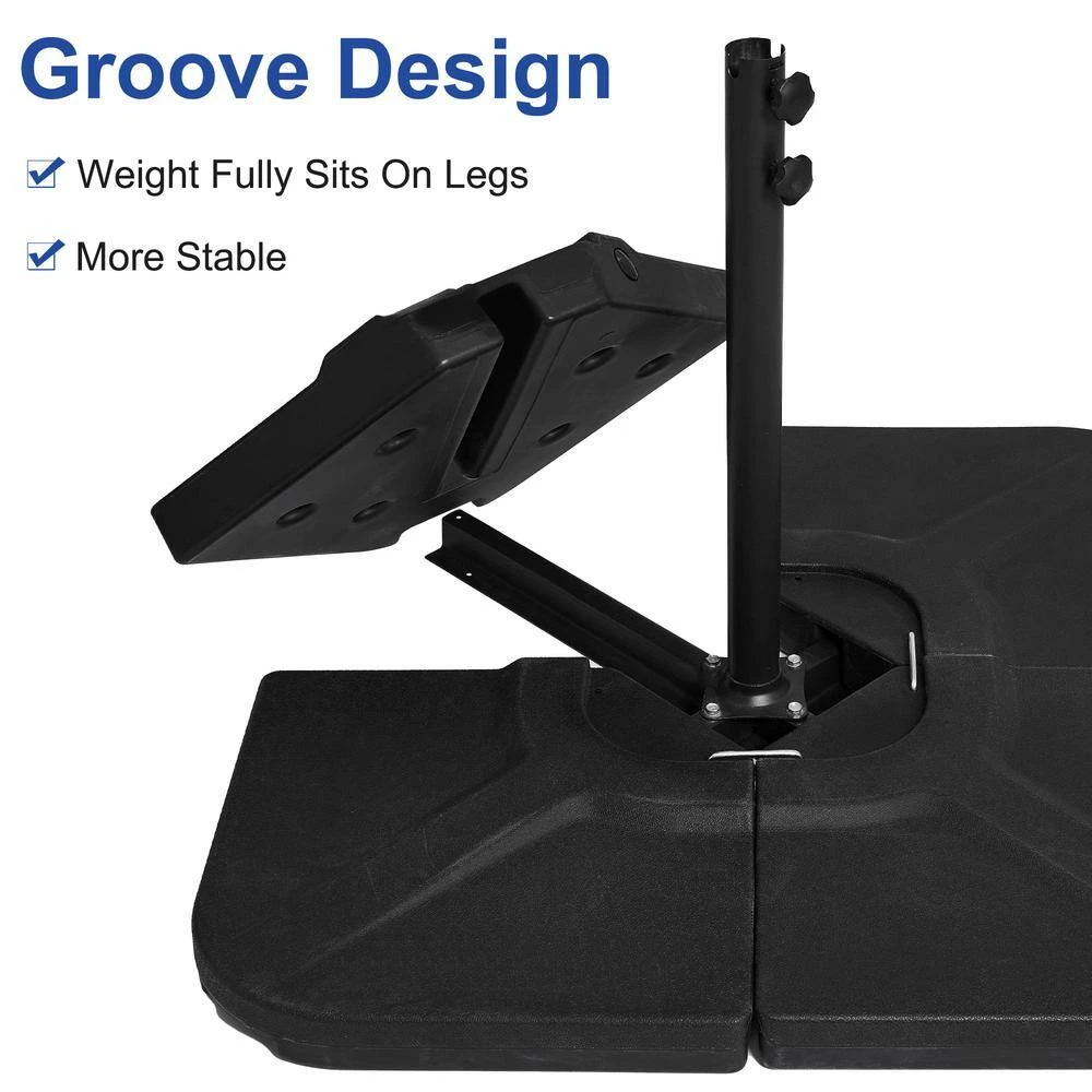 Ensure the stability and safety of your cantilever umbrella with the 230 lbs. umbrella base. Umbrella Base is made of heavy-duty plastic, is real hard and weather resistant, that prevents color from fading and easy to maintain. This umbrella base can be filled with water and sand, provides reliable support to keep your cantilever umbrella securely in place.