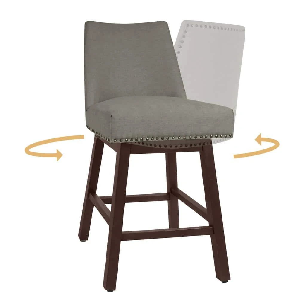 29.53 In Back Swivel Velvet Grey Bar Stool With Rubber Wood Frame (Set Of 2)