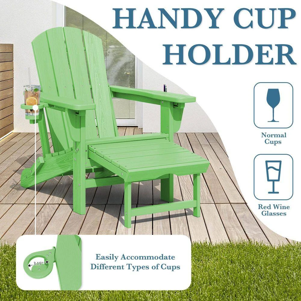- 3-in-1 multifunctional chair: the jearey 3-in-1 adirondack chair is an innovative version that combines the features of a folding adirondack chair and retractable ottoman, it also comes with a double-sided cup holder and a retractable footrest, seamlessly integrating technology and convenience