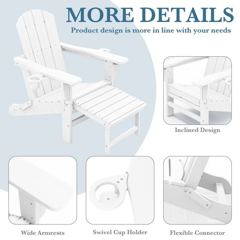 - 3-in-1 multifunctional chair: the Jearey 3-in-1 adirondack chair is an innovative version that combines the features of a folding adirondack chair and retractable ottoman, it also comes with a double-sided cup holder and a retractable footrest, seamlessly integrating technology and convenience