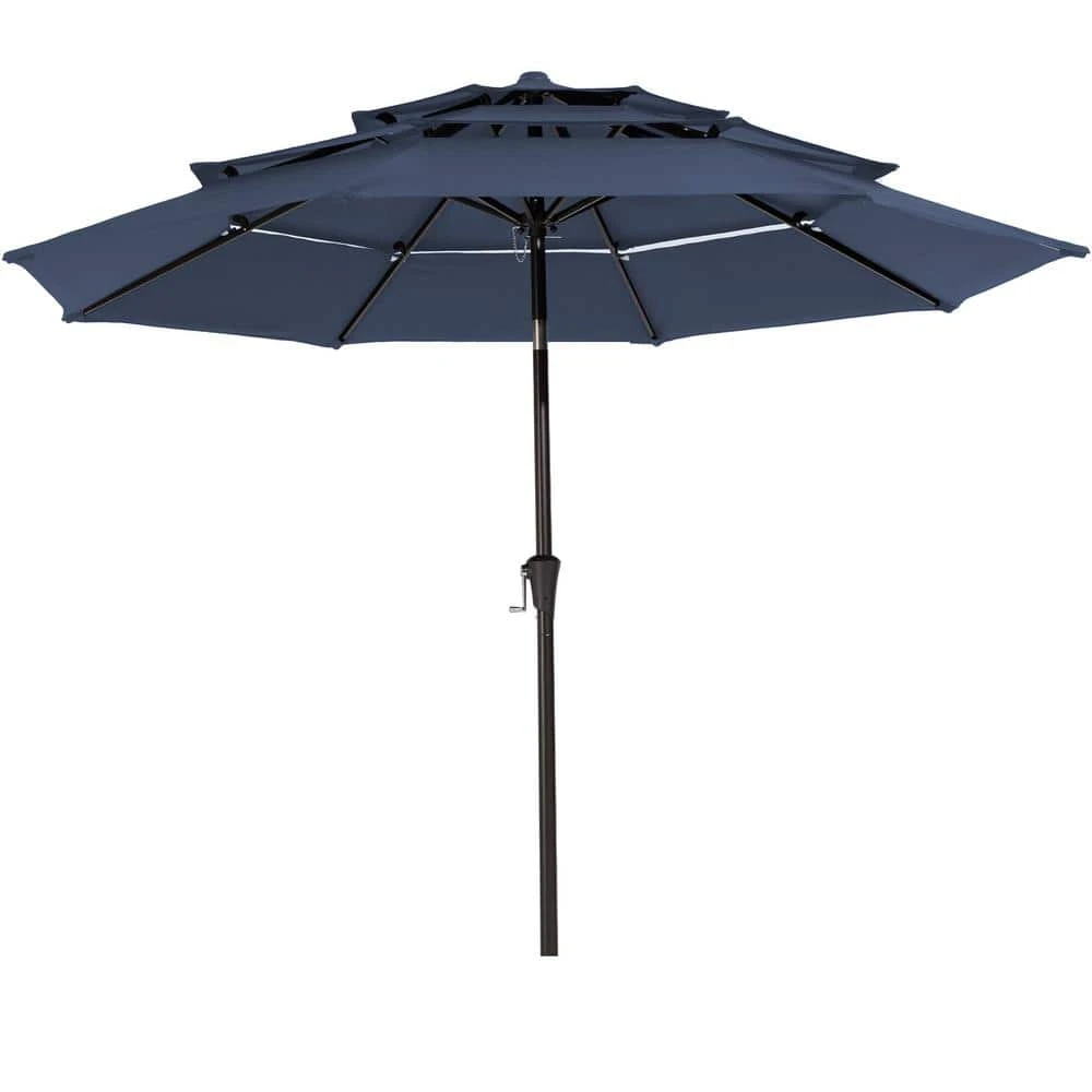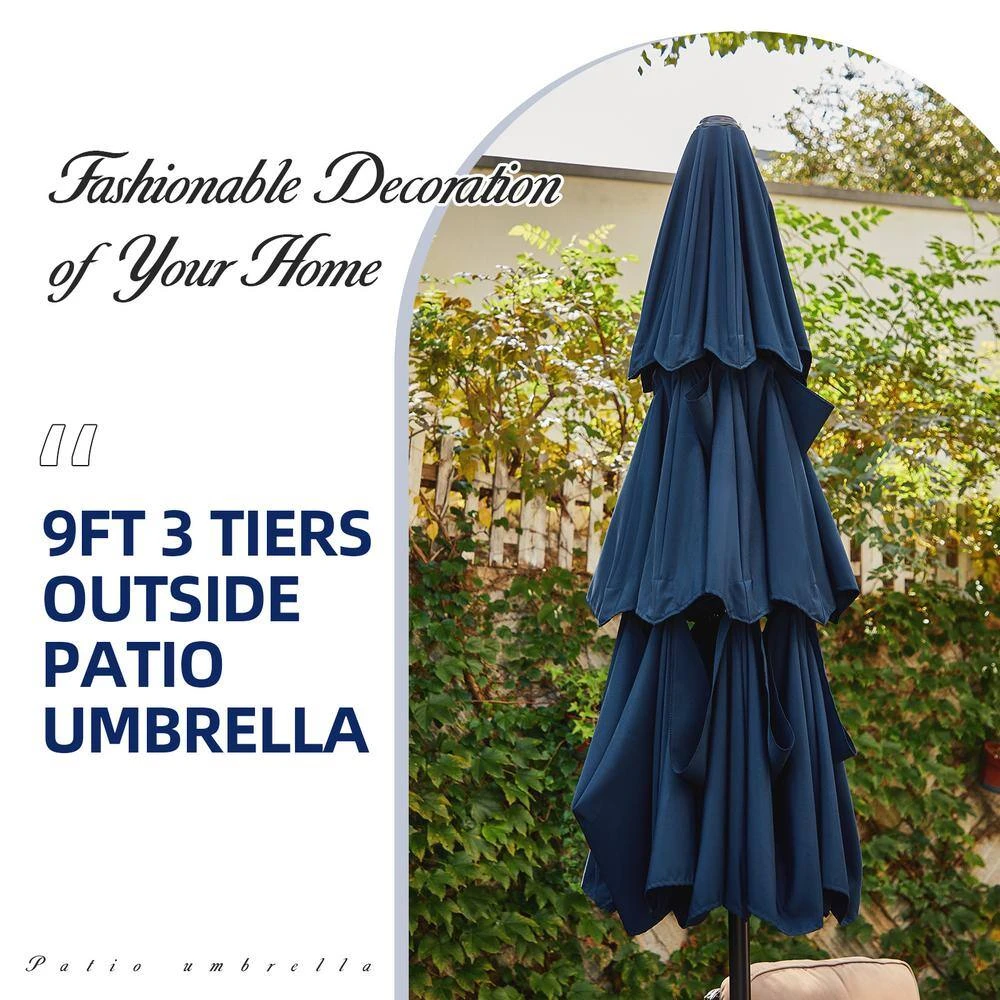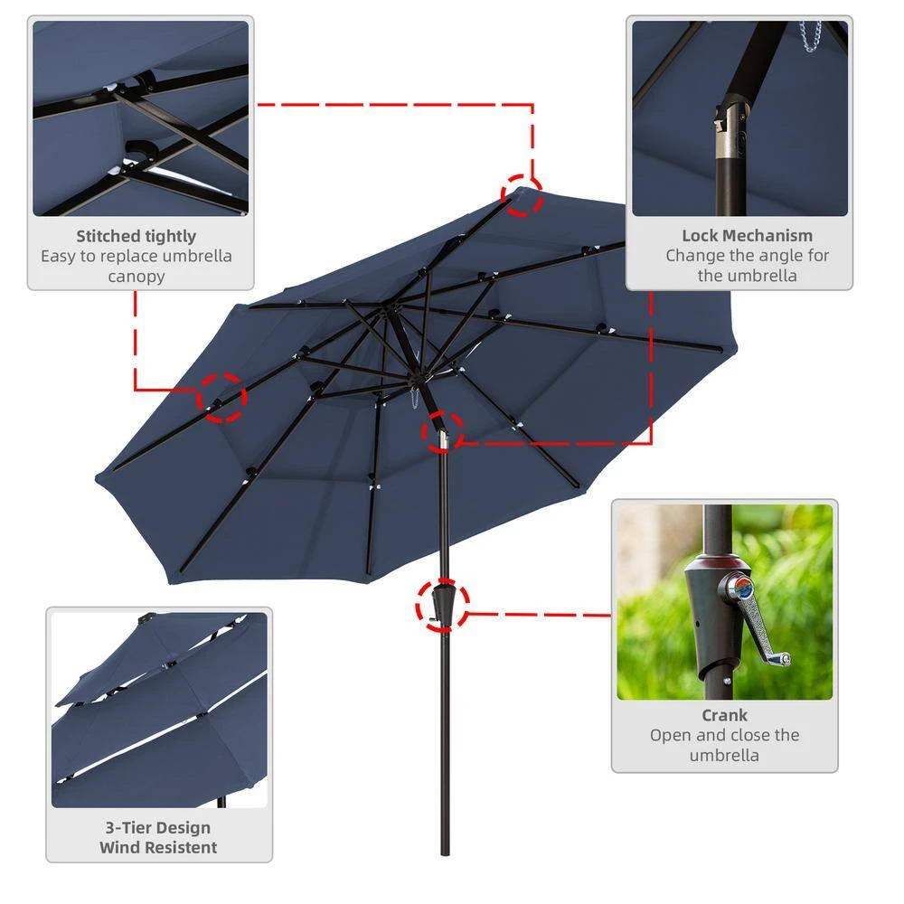 3-Tier 9 Ft. Steel Crank Lift Market Patio Umbrella In Navy