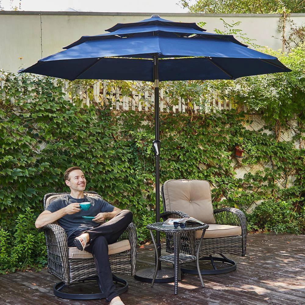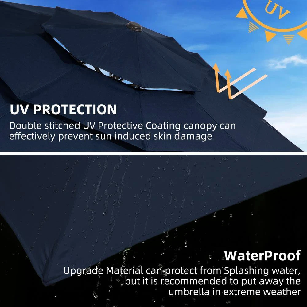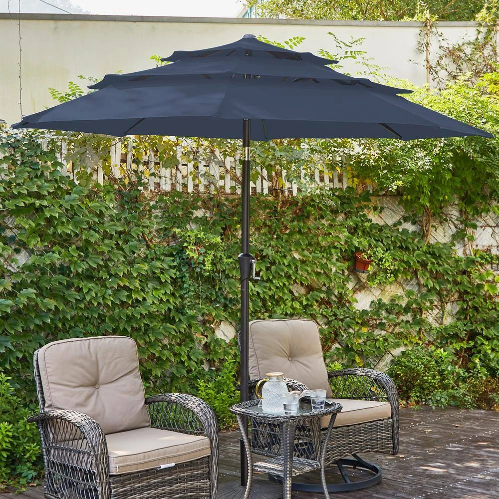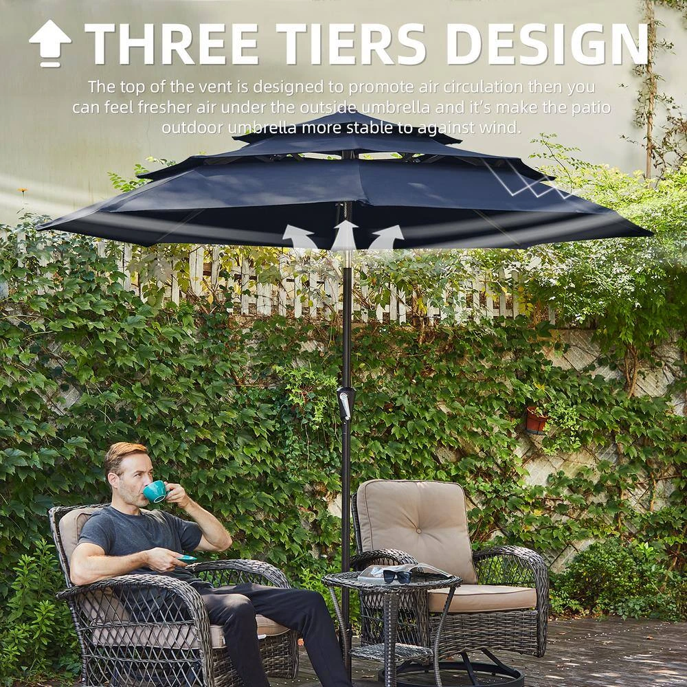 3-Tier 9 Ft. Steel Crank Lift Market Patio Umbrella In Navy
