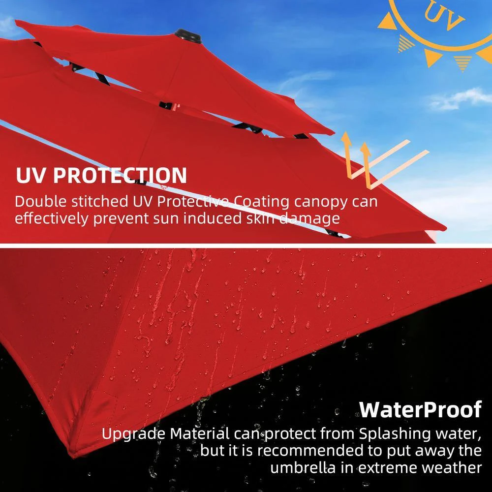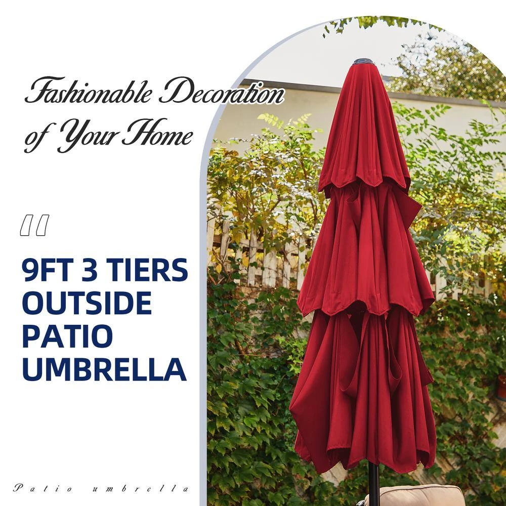 3-Tier 9 Ft. Steel Crank Lift Market Patio Umbrella In Red