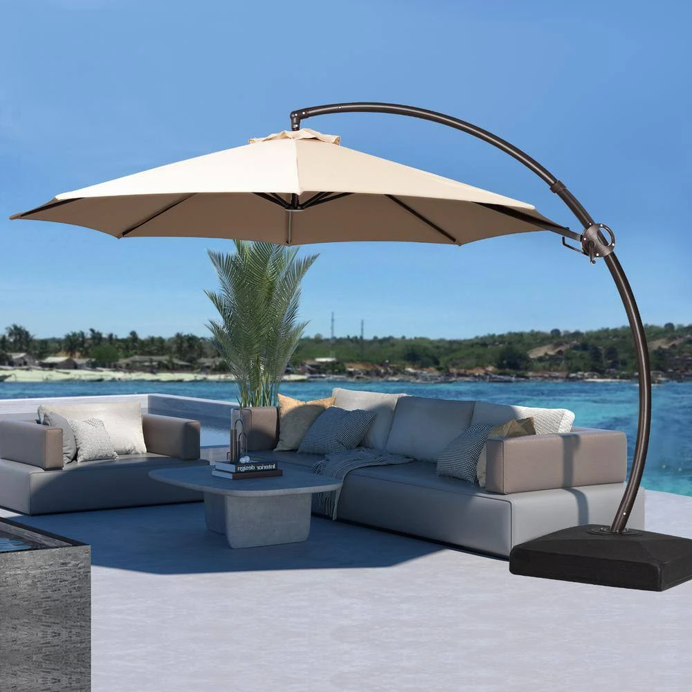Do you want a sturdy and durable base weight to hold your offset or cantilever umbrella in place. This is our high-quality and beautiful umbrella base. Made of weather-resistant HDPE plastic and iron, it has a heavy- duty structure that is stable enough to ensure extremely long service life. Importantly, it can weigh up to 310 lbs. when filled with water or sand, providing steady support for your umbrella. Besides, it also has 3 wheels to help you move effortlessly. The easy-to-fill water injection ports allow you to fill quickly without wasting time, and the drain port is easy to empty, giving you the best use experience. Please note you need remove the cross base to match this base. The stylish square appearance is suitable for any outdoor space. You can enjoy a pleasant afternoon on the patio, courtyard, porch, garden, and poolside. What are you waiting for.