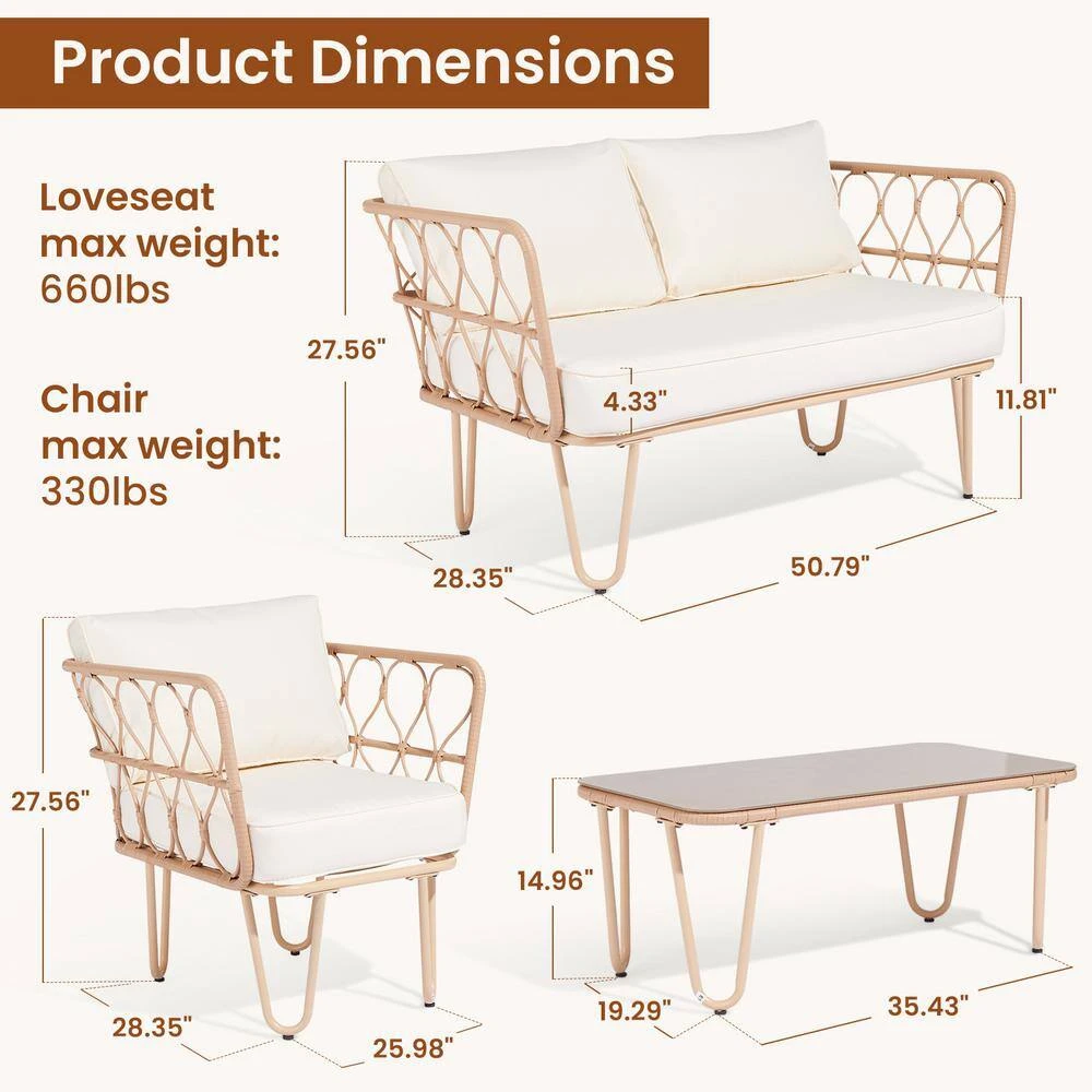 - Strong and sturdy: the wicker of the outdoor furniture set is sturdy but also very light, the seat cushion of this patio conversation set can be removed for easy cleaning