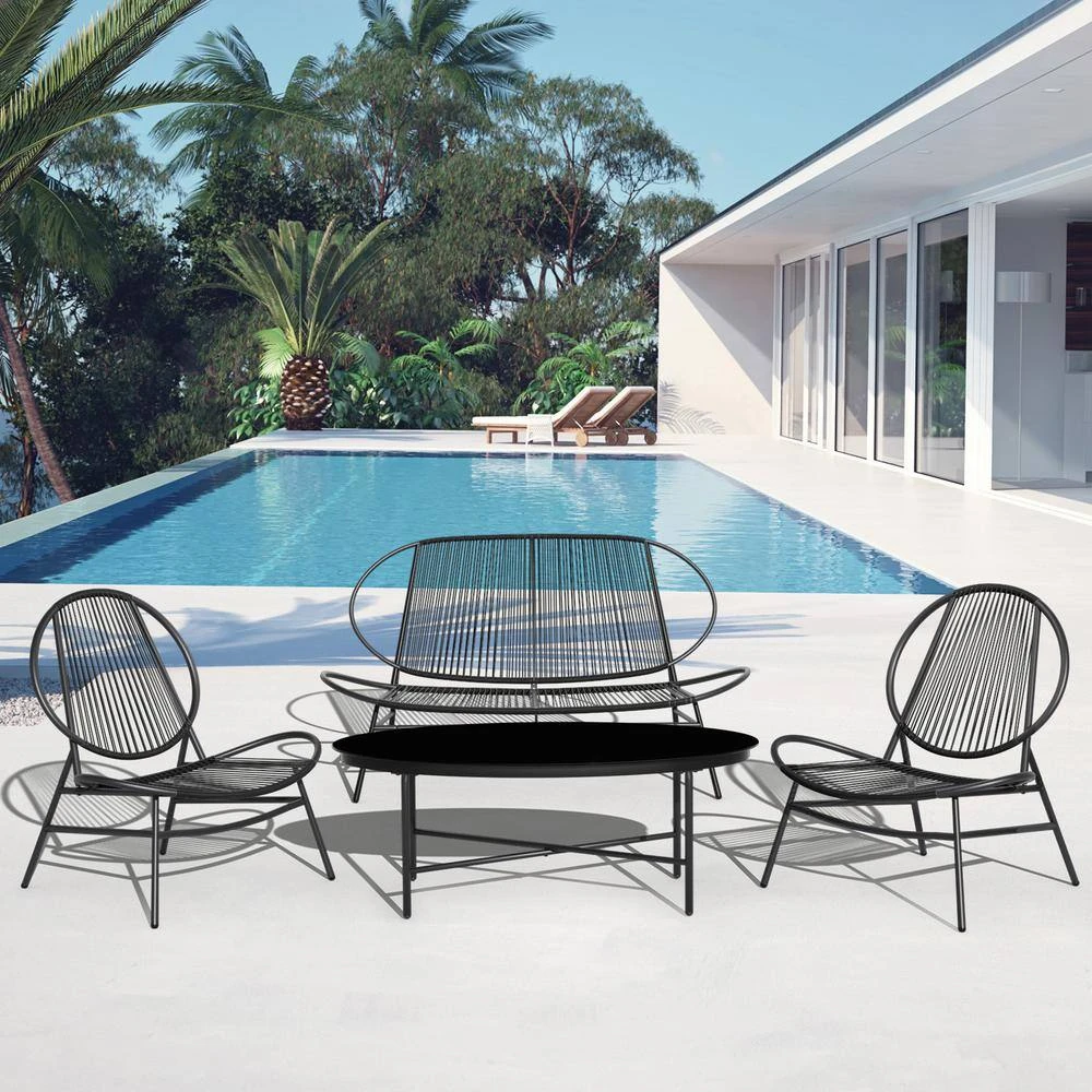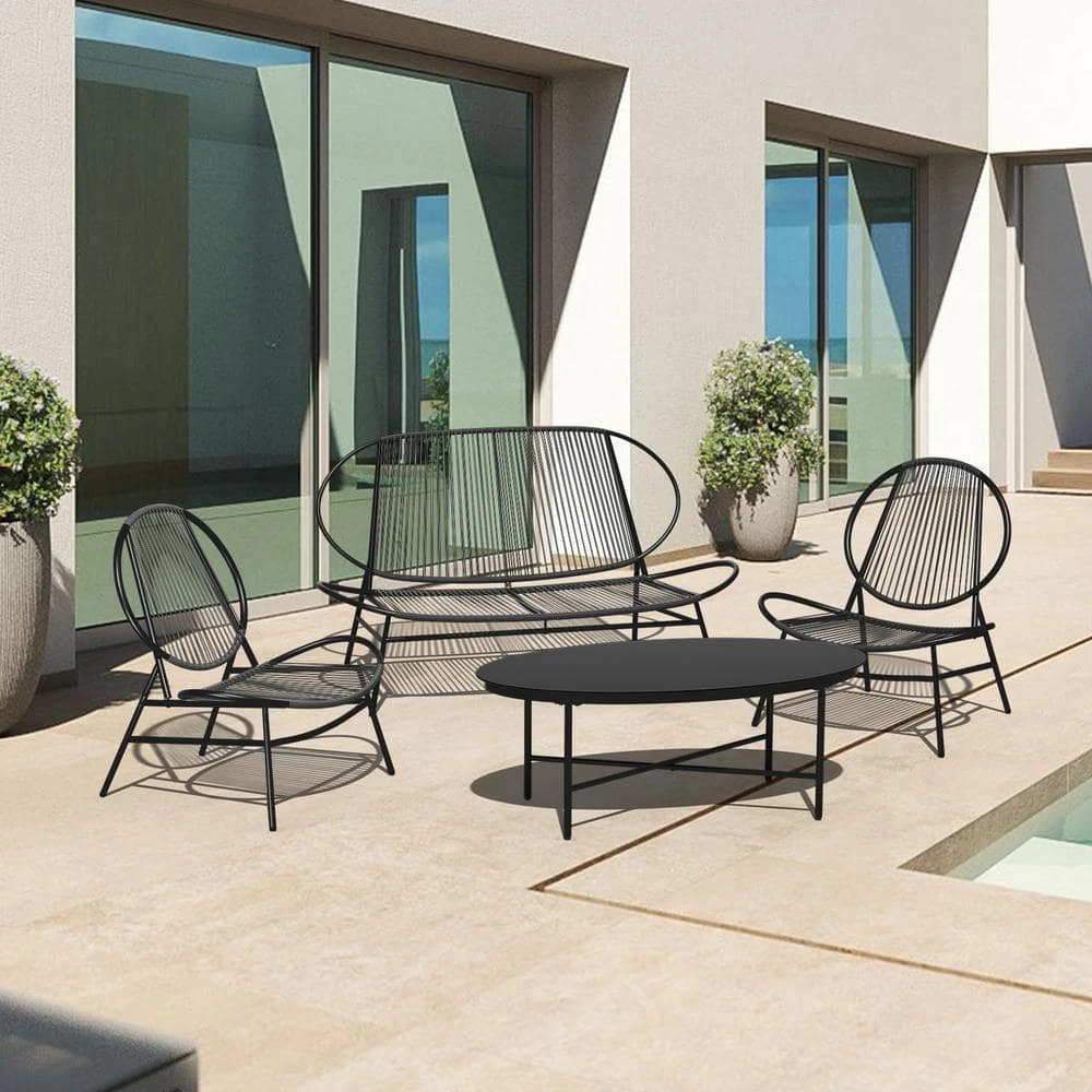 Simple yet elegant design makes this 4-piece bistro set perfect for any outdoor and indoor setting. You can sit on the front porch and enjoy afternoon tea or chat with friends in your own backyard. Made of cast aluminum, it features a unique design and black finish for a vintage look that will suit any home.