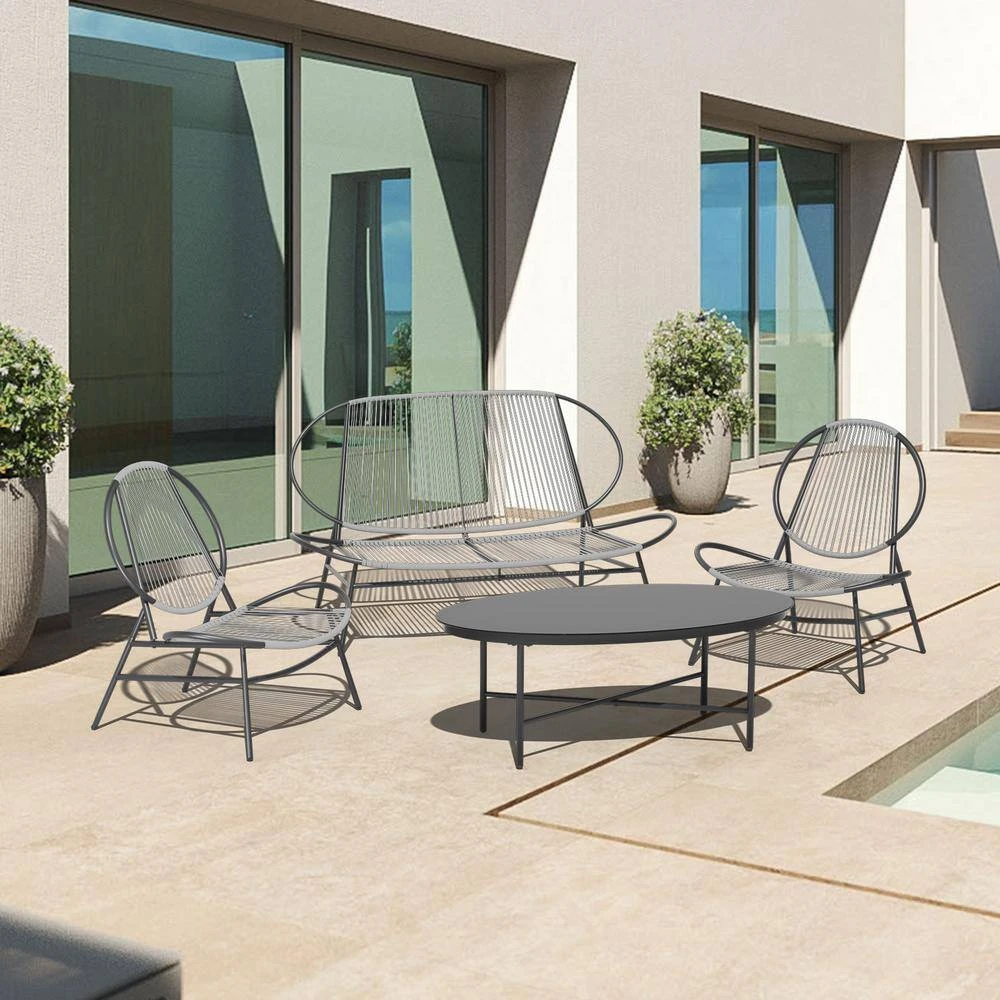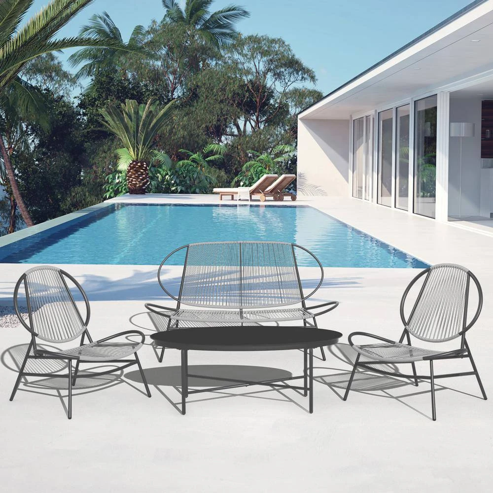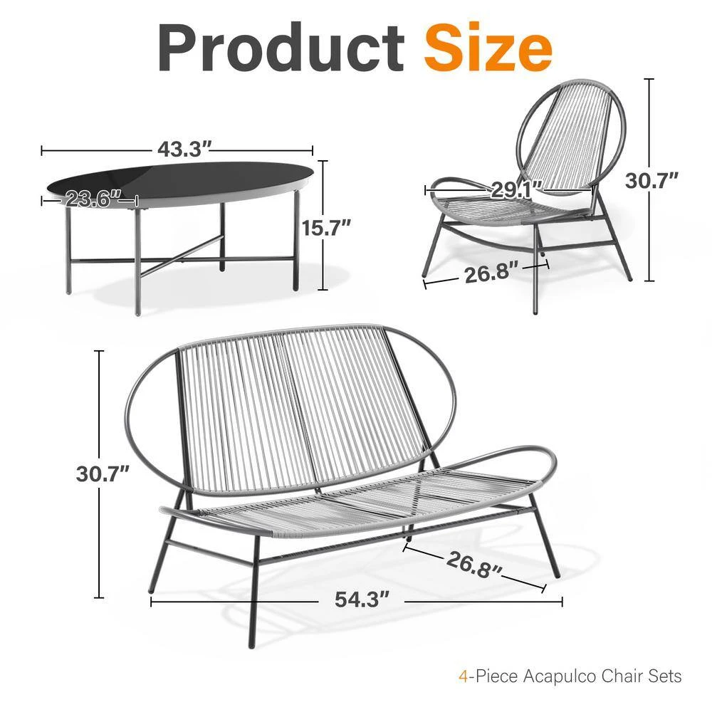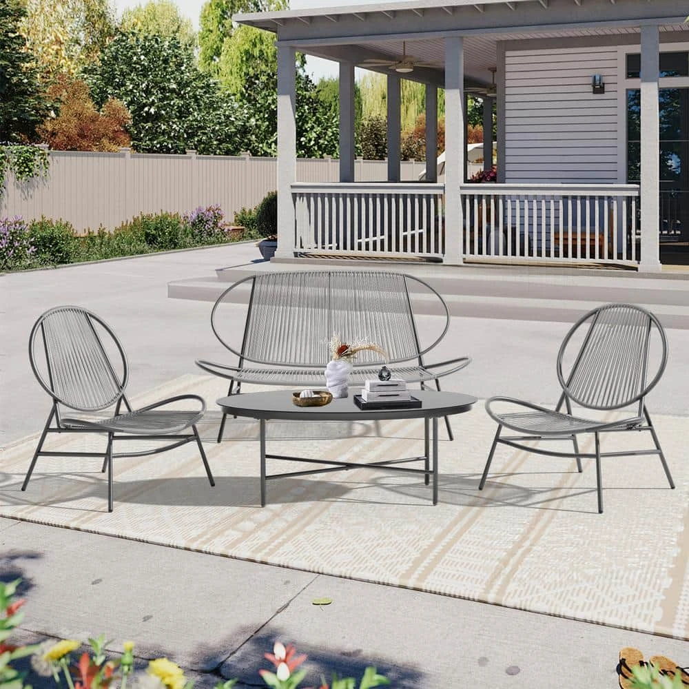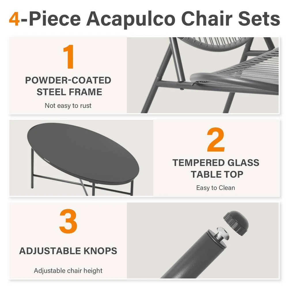 4-Piece Grey Round Rattan Patio Rust-Proof Outdoor Bistro Set