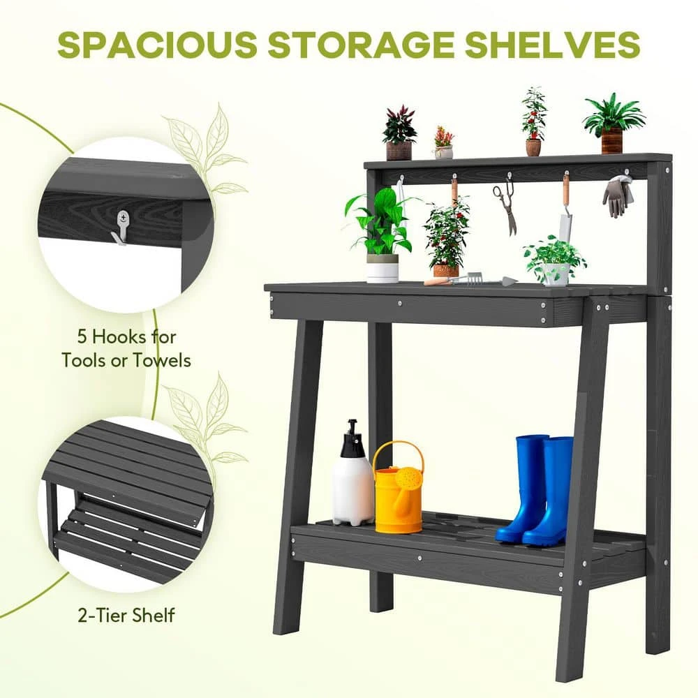 From lush gardens to cozy interiors, this 3-in-1 multifunctional potting bench brings both beauty and order to your life. Whether you’re arranging vibrant plants, organizing garden tools, or showcasing home decor, its thoughtful design adapts to your needs. Made of eco-friendly HDPE, it offers the natural charm of wood with none of the hassle-resistant to fading, rotting, or cracking. With spacious shelves and handy hooks, it’s more than a storage solution-it’s a piece that helps create a space you’ll love coming home to.