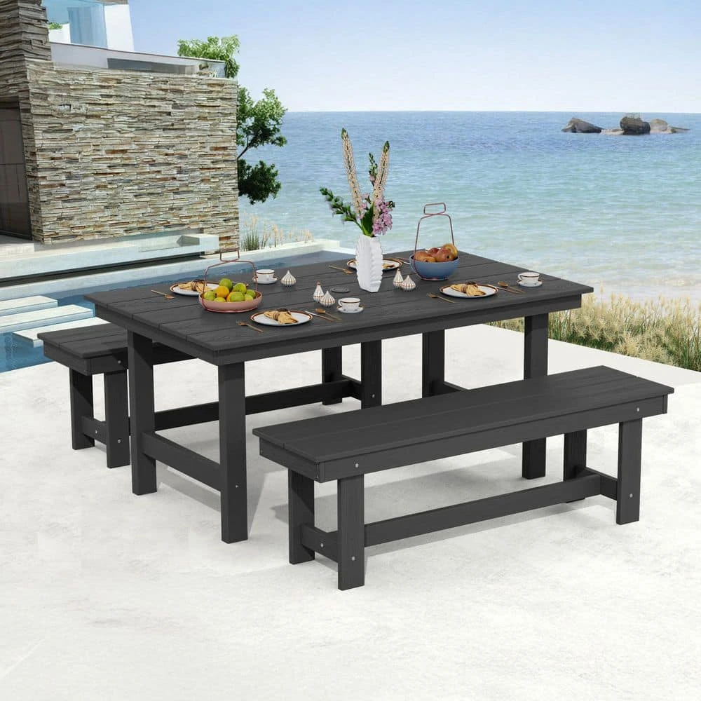 56.3 In. W Outdoor Patio HDPE Plastic All-Weather Resistant Ottoman Backless Dining Bench In Gray