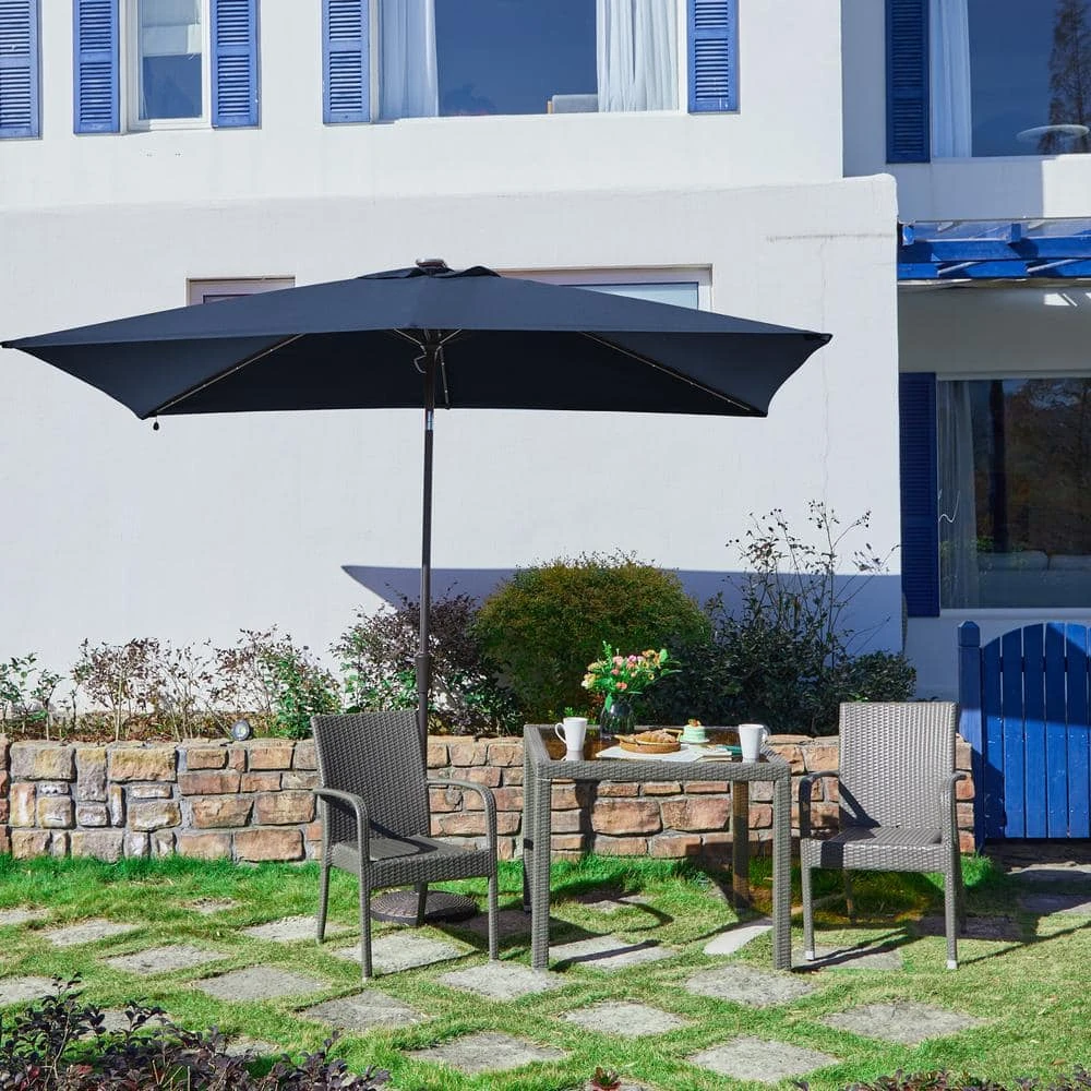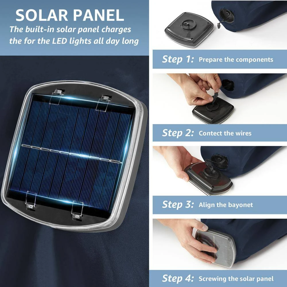 6.5 Ft. X 10 Ft. Steel Lighted Market Tilt Solar Umbrella With Crank In Navy