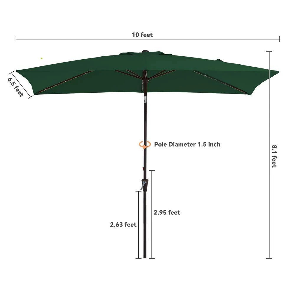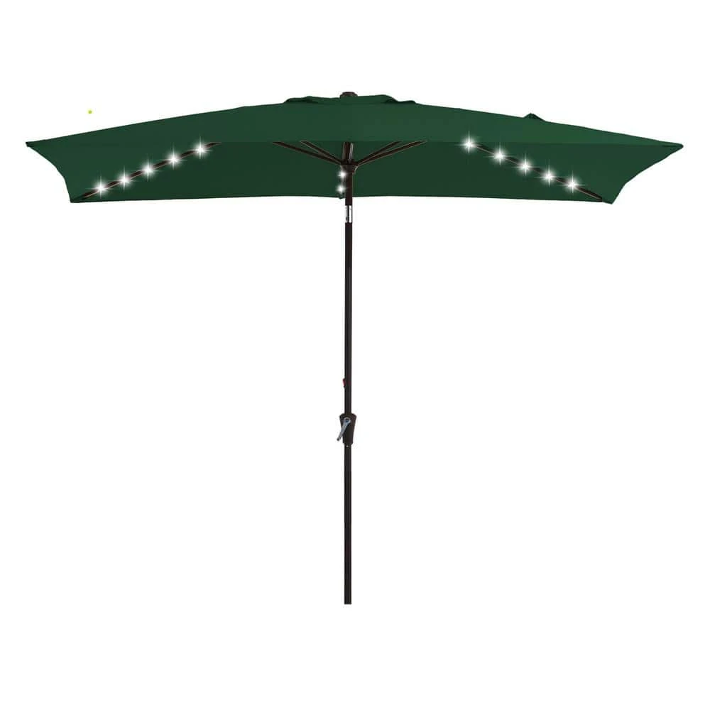 6.5 X 10 Ft. Market Solar LED Lighted Tilt Patio Umbrella Rectangular Outdoor Umbrella In Dark Green