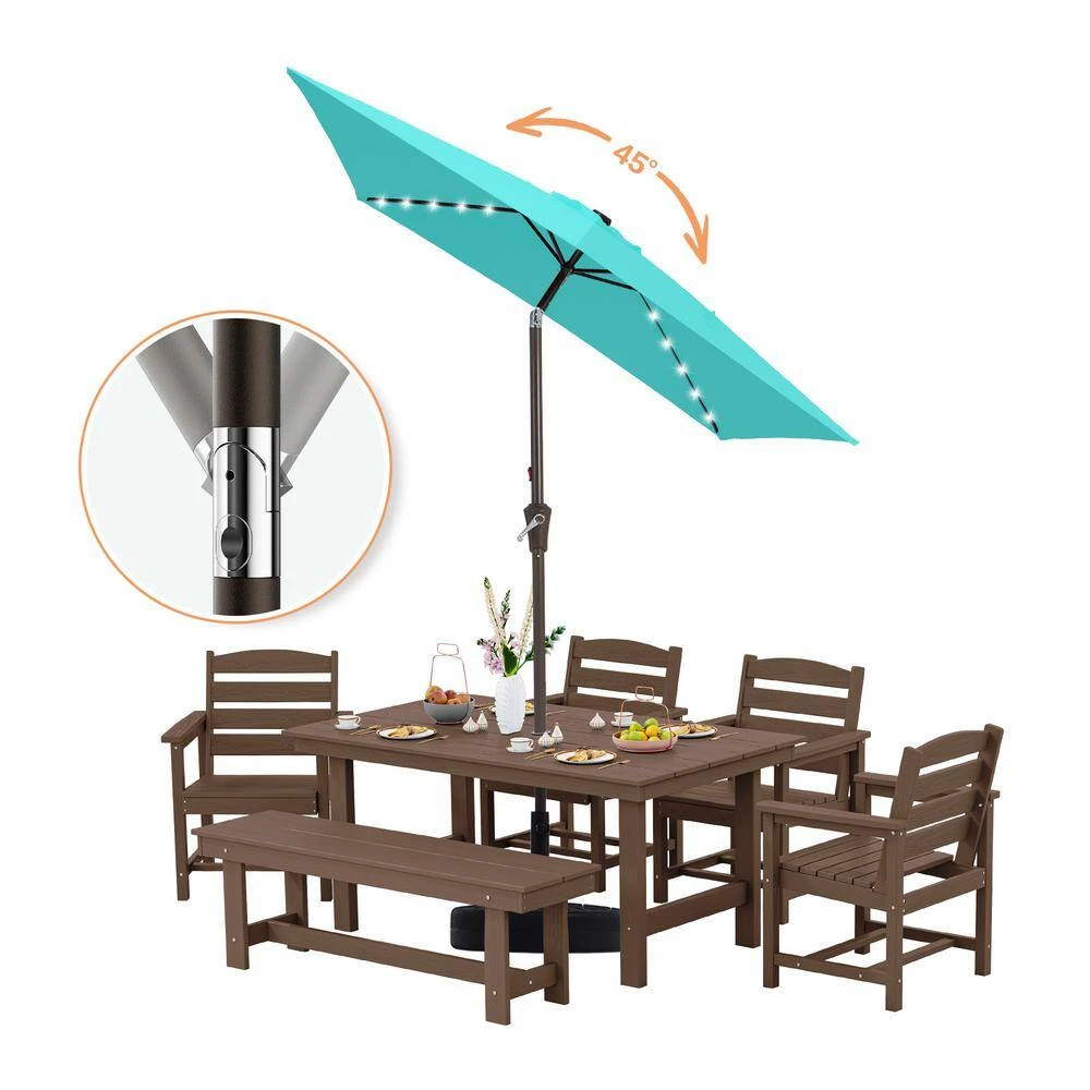 6.5 X 10 Ft. Market Solar LED Lighted Tilt Patio Umbrella Rectangular Outdoor Umbrella In Peacock Blue