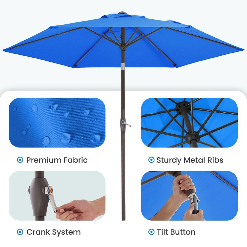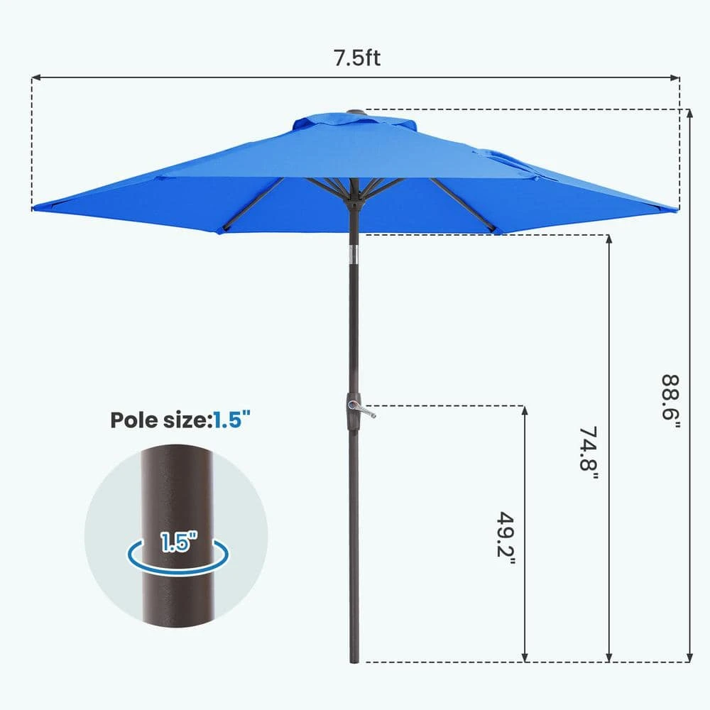 With exceptional quality 7.5 ft. patio umbrella to stay outdoor to enjoy nature. Its colorful, waterproof polyester fabric provides the function of sun protection. The weather-resistant steel pole has a convenient crank lift to manually tilt, so it can adjust the angle of this umbrella to suit your needs. Plus, it is great for patios, porches, lawns. For safety, use the umbrella only in conjunction with a dining table and heavy-duty umbrella base (sold separately). 2 tightening knobs on the base tightly secure your umbrella pole and allow for use with a variety of pole diameters.