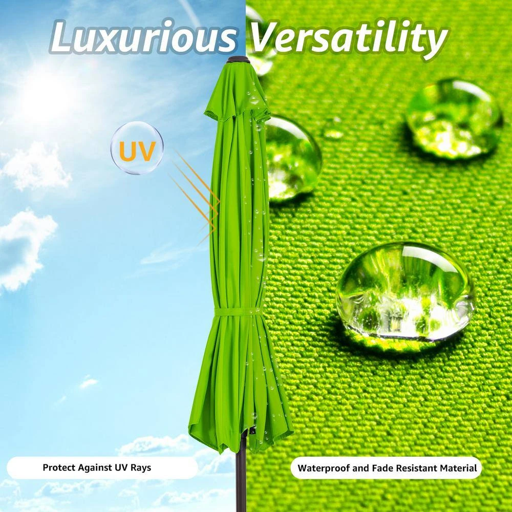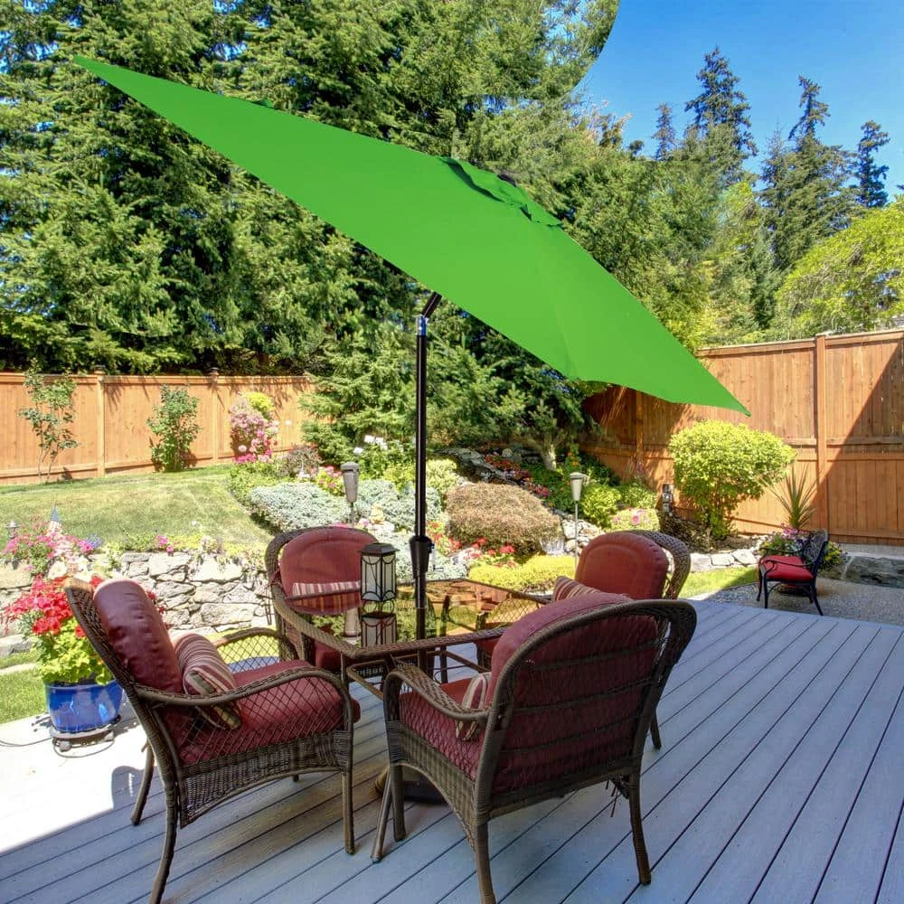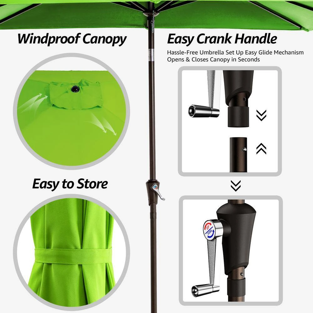 The 7.5 ft., square patio umbrella is made of high durability UV-resistant polyester fabric, which is waterproof, fade-resistant and rust-proof. And the crank system makes it easy to collapse. The function of tilt can satisfy your demand. Provide a perfect shade for your patio, garden, deck, backyard, pool and any other outdoor area.
