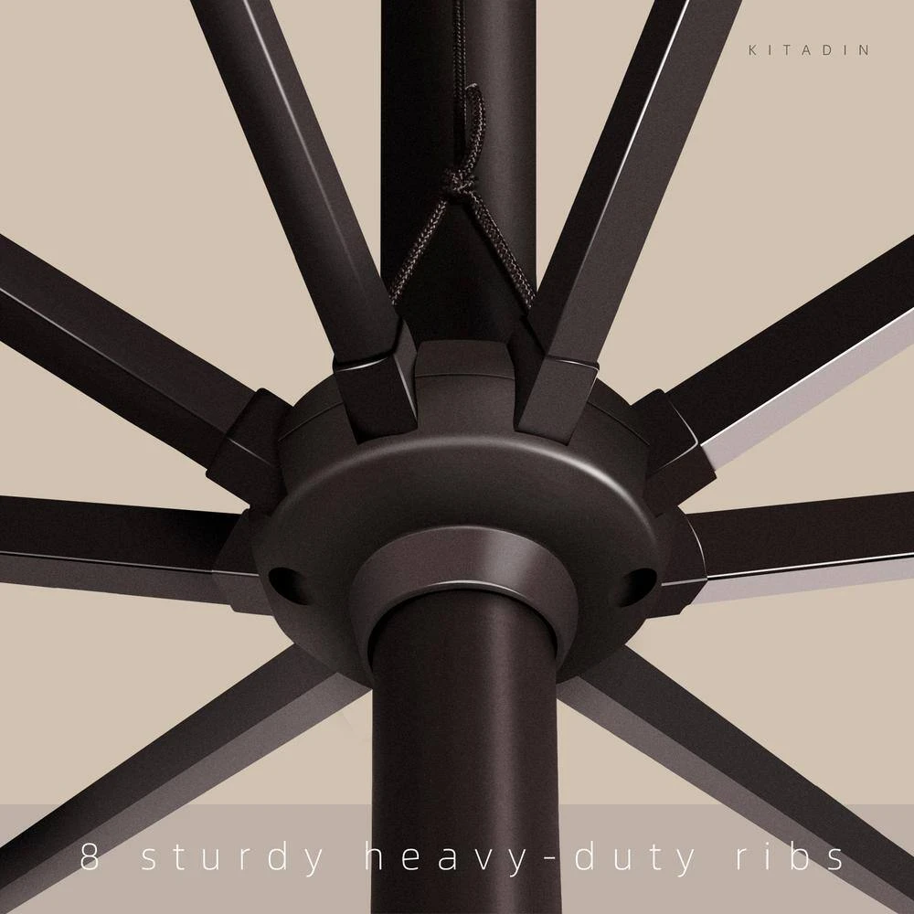 - Sturdy steel pole attaches to the 8 ribs that provide stronger support in the wind