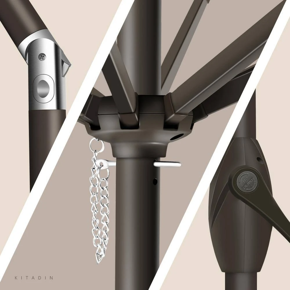 The 7.5 ft., square patio umbrella is made of high durability UV-resistant polyester fabric, which is waterproof, fade-resistant and rust-proof. And the crank system makes it easy to collapse. The function of tilt can satisfy your demand. Provide a perfect shade for your patio, garden, deck, backyard, pool and any other outdoor area.