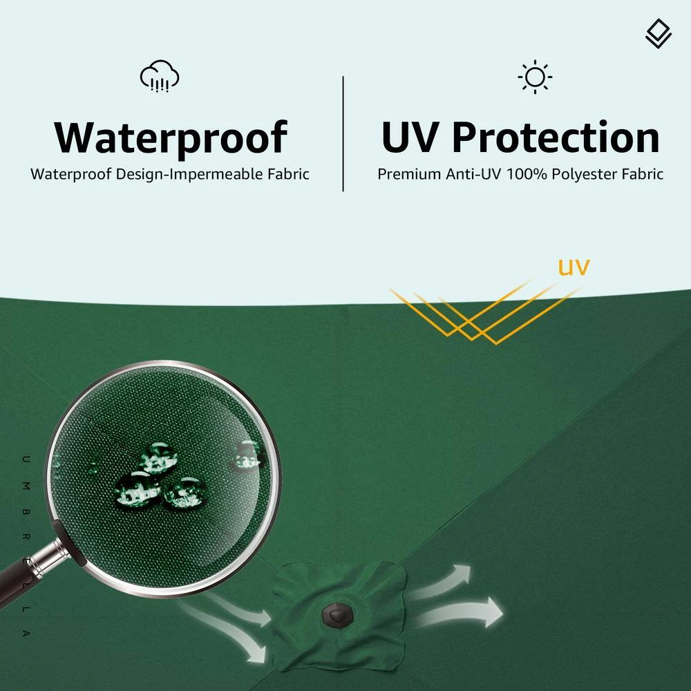 The 7.5 ft., square patio umbrella is made of high durability UV-resistant polyester fabric, which is waterproof, fade-resistant and rust-proof. And the crank system makes it easy to collapse. The function of tilt can satisfy your demand. Provide a perfect shade for your patio, garden, deck, backyard, pool and any other outdoor area.