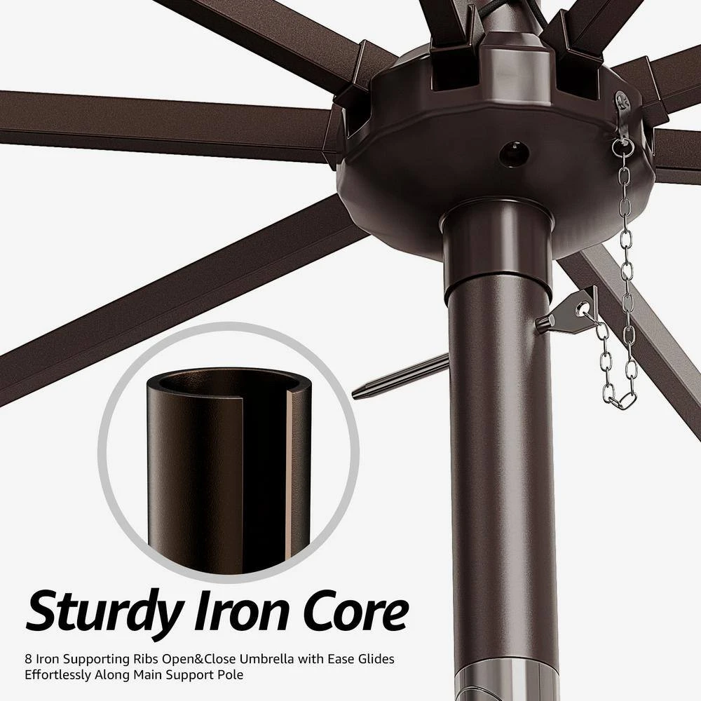 - Sturdy steel pole attaches to the 8 ribs that provide stronger support in the wind