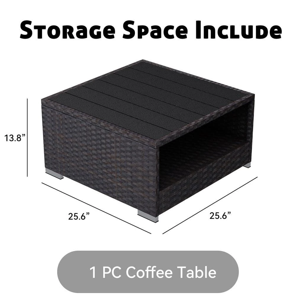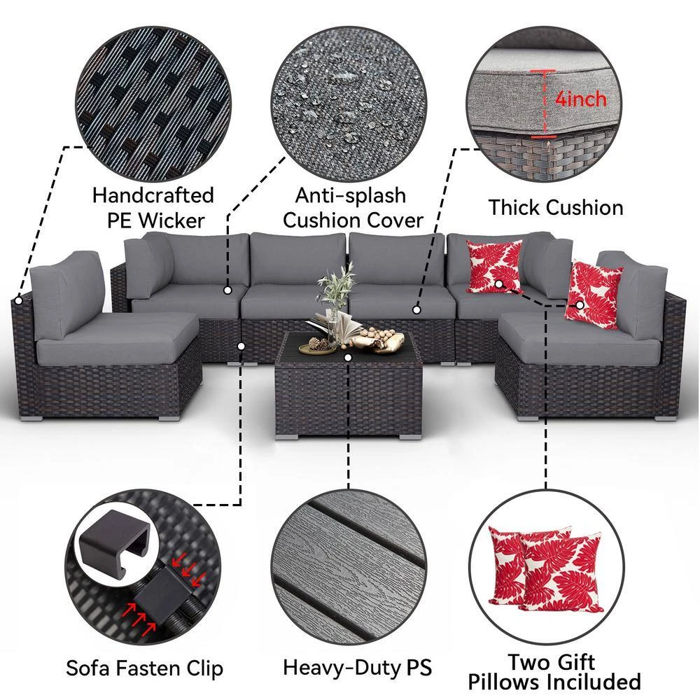 - Specially for you: Except 4 single sofa, 2 corner sofa, 1 coffee table and cushions contained originally, we prepare extra 2 pillows (16.5”x16.5”) and 1 rain-resistant sofa cover for you.
