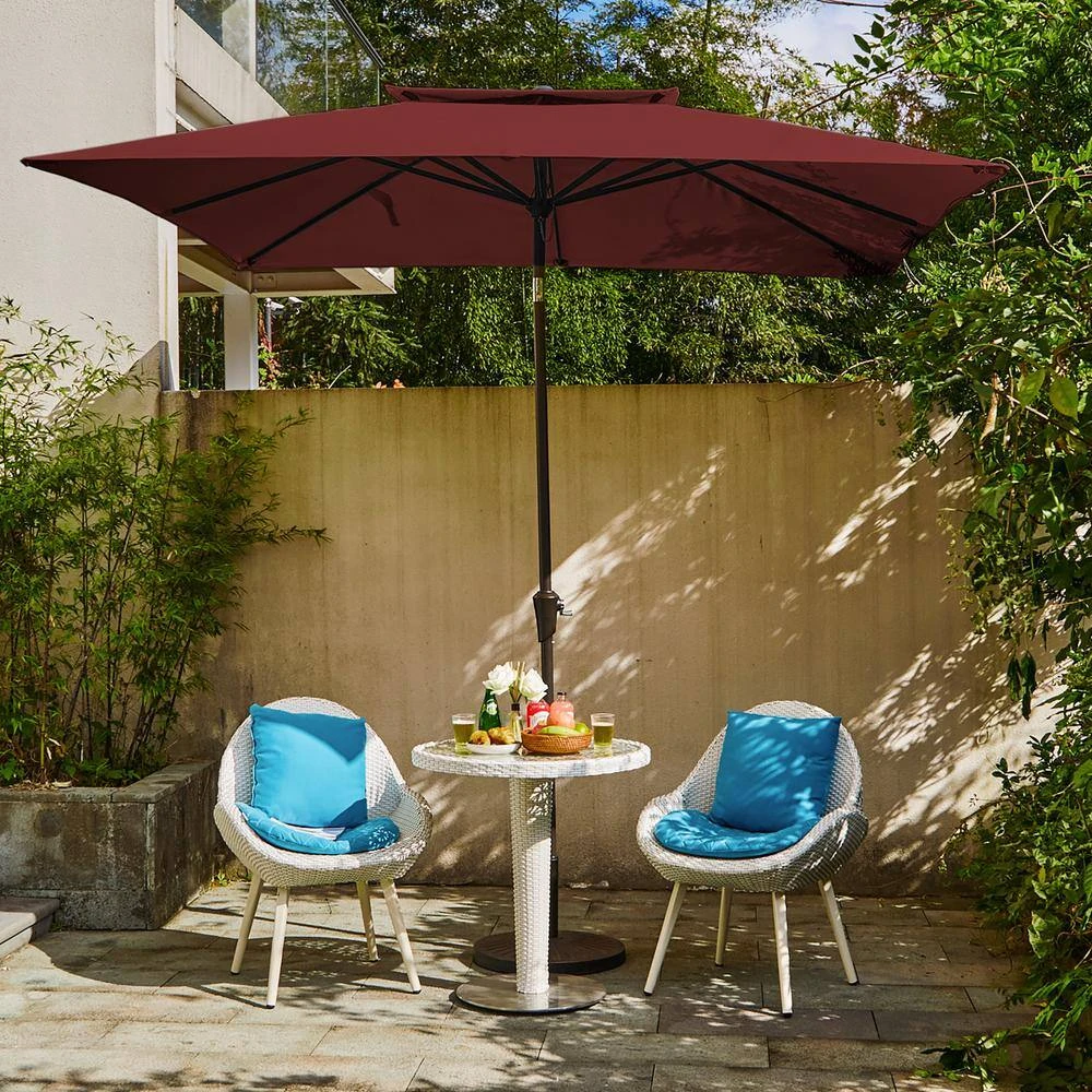 - Sun protection – 8.5 ft. x 8.5 ft. coffee garden umbrella diameter wide with enough coverage to block the Sun. UPF 50 plus UV protection filters out 98% of harmful UV radiation rays adjustable tilt to angle for maximum coverage from the blazing sun